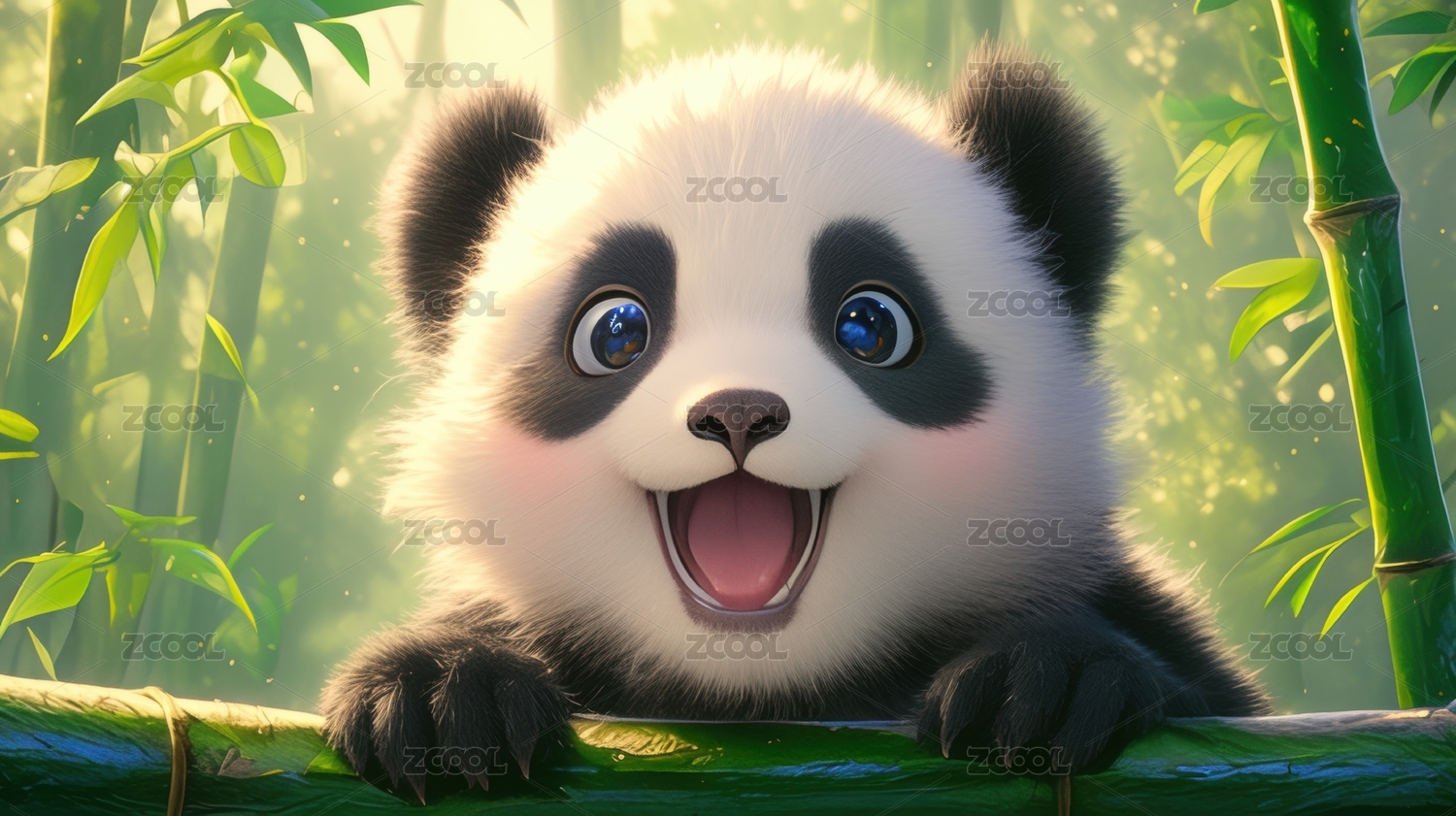 大熊猫可爱唯美野生动物3D卡通插画壁纸