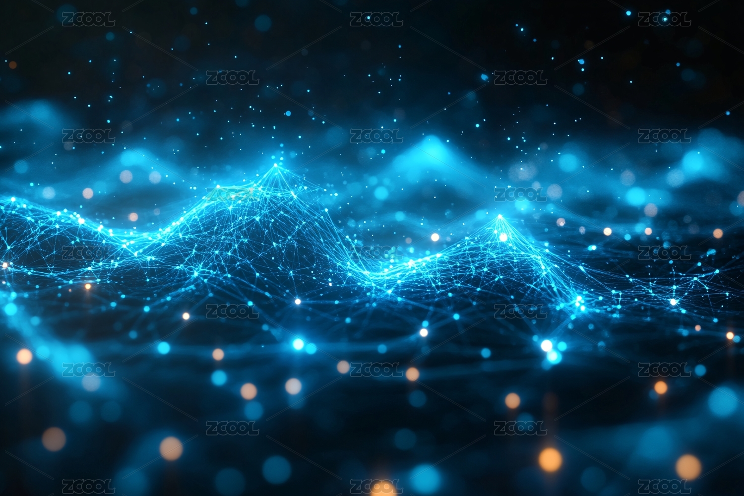 蓝色光点交织的抽象背景