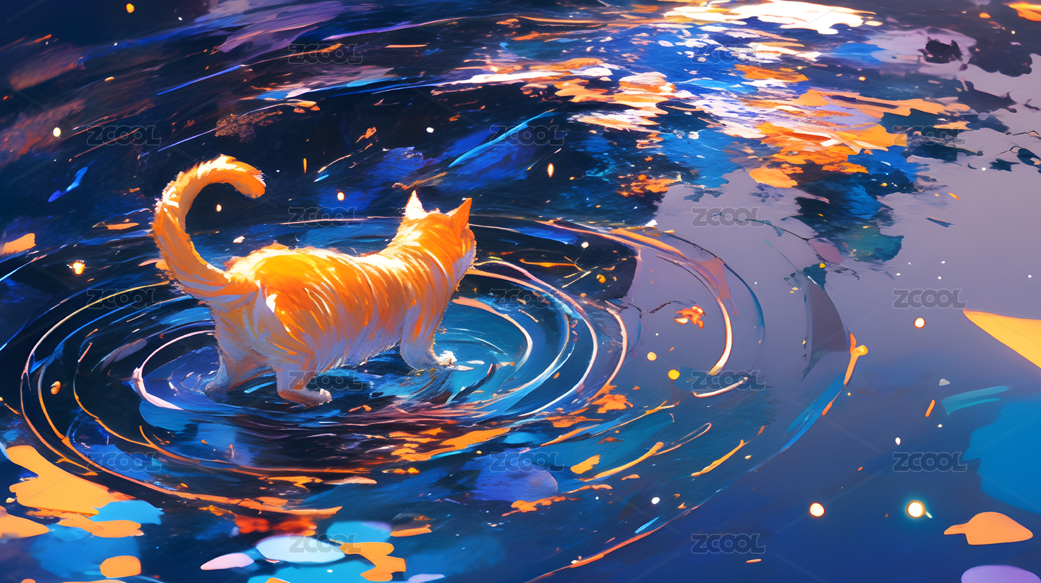 星空,光影,梦幻,壁纸,AI,艺术,数字艺术,插画,猫咪,背景
