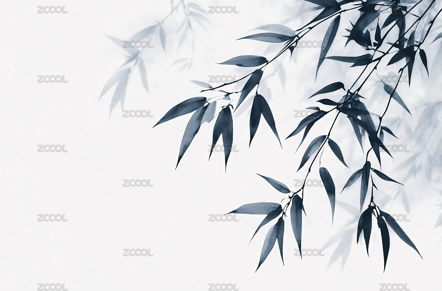 水墨画,艺术,绘画,写意,优雅,竹叶,绿色,植物,水墨,自然