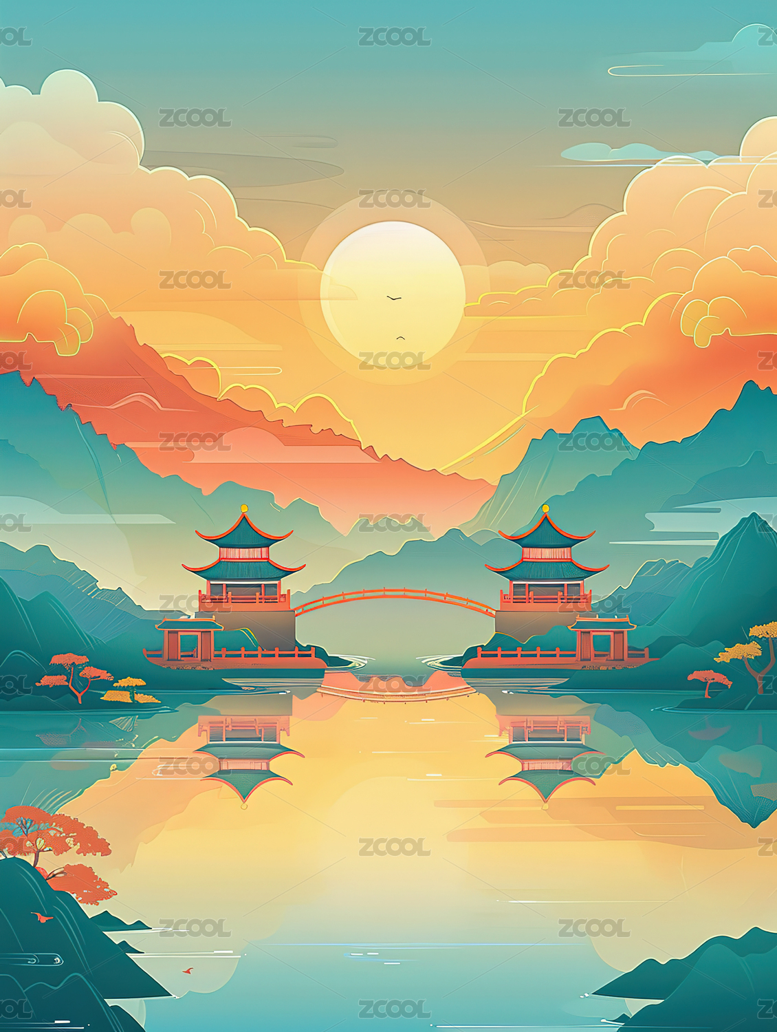 高山,树,地形,插画,鸟类,二十四节气,中国文化,户外,节气,国风