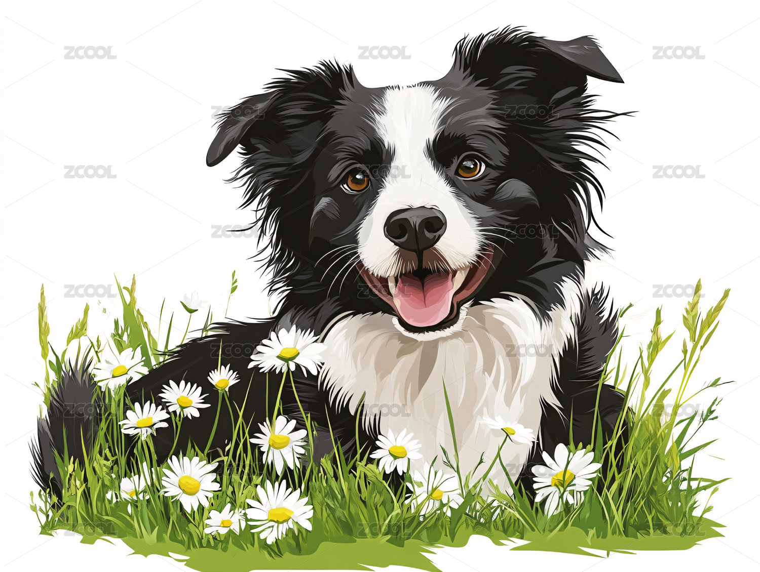 花丛中的小狗插画
