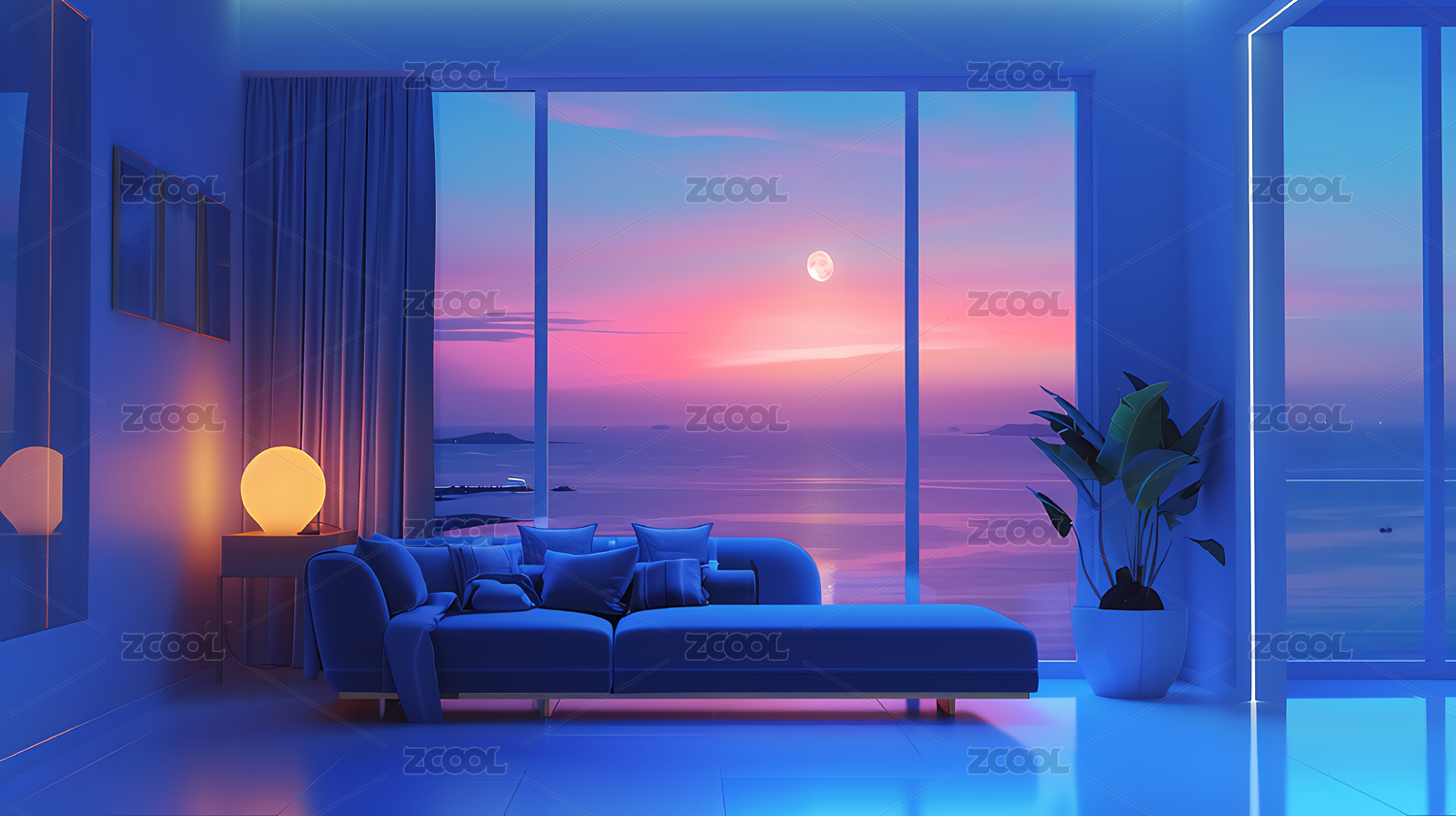 梦幻治愈系小清新场景世界自闭症日月亮插图