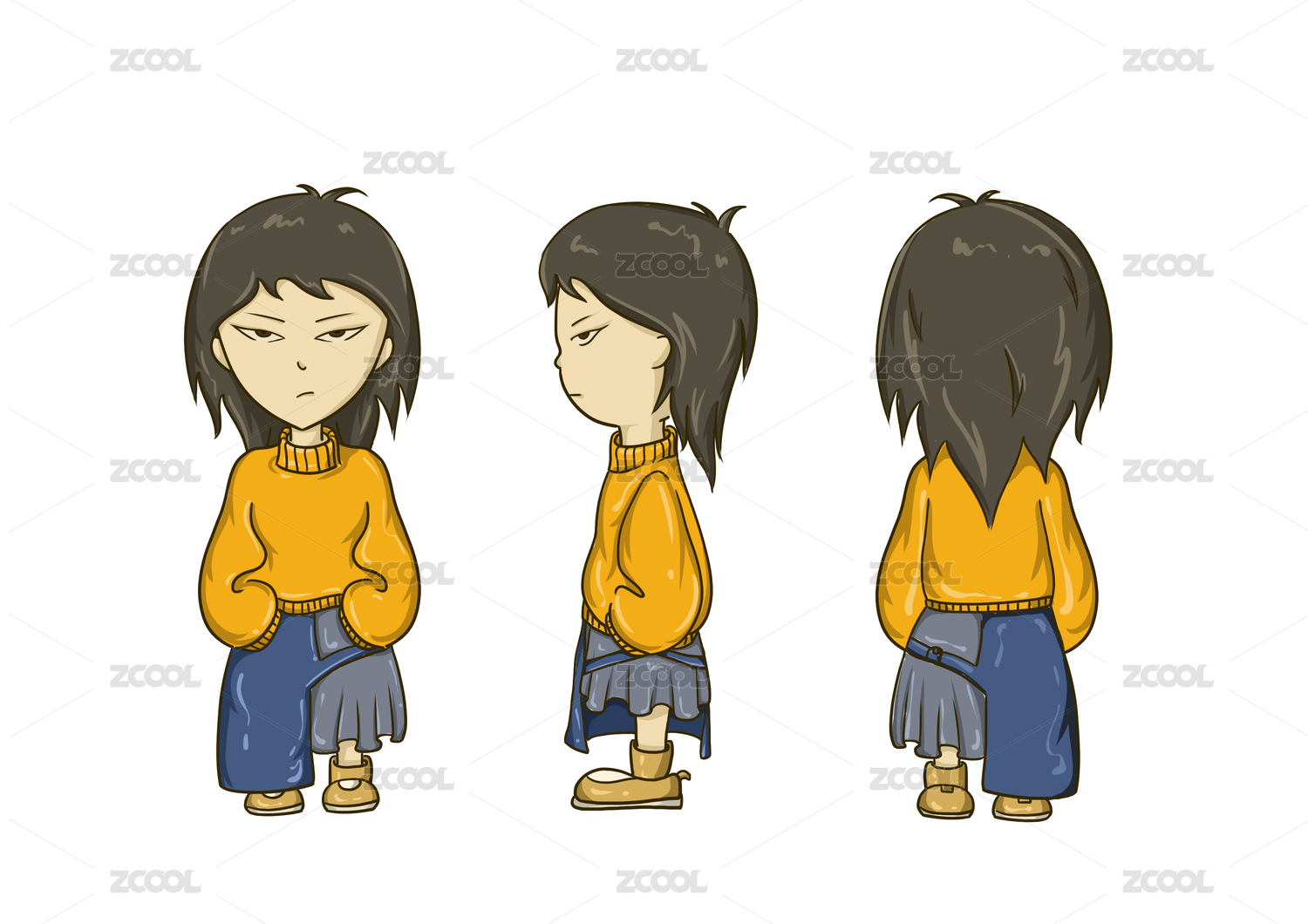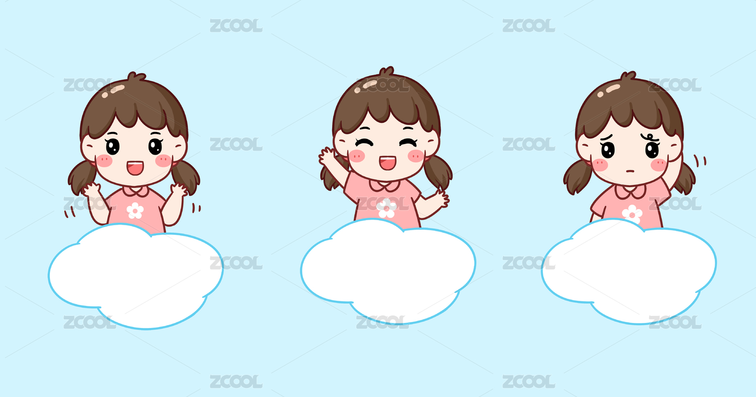 卡通人物设计女孩表情包设计萌萌哒矢量图