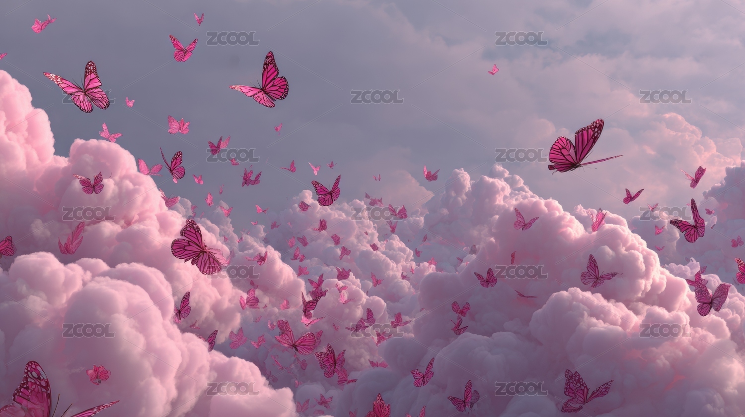 粉色蝴蝶在云间翩翩起舞