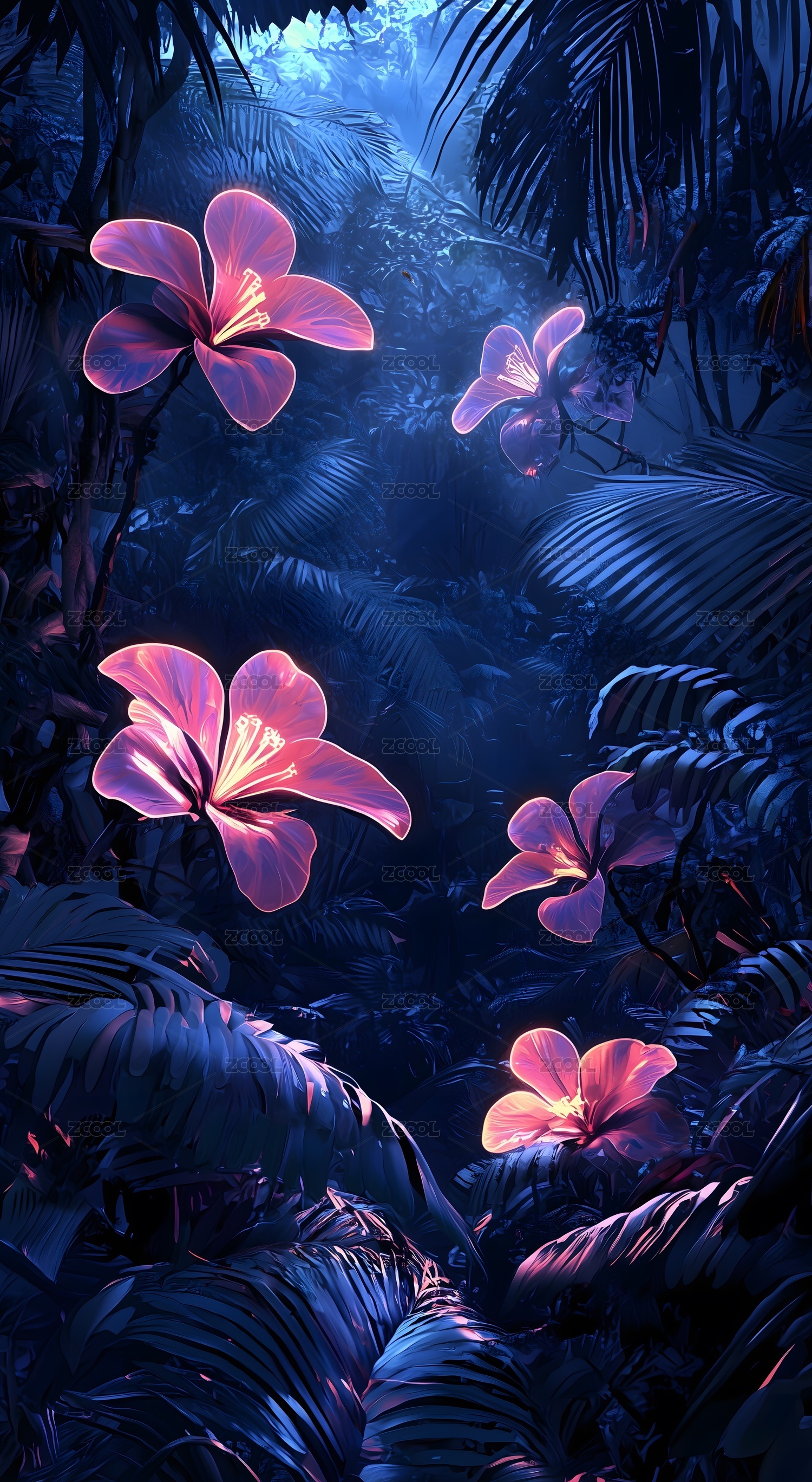暗色,黑背景,梦幻,荧光色,溪水,树林,森林,插画,绘画,日漫
