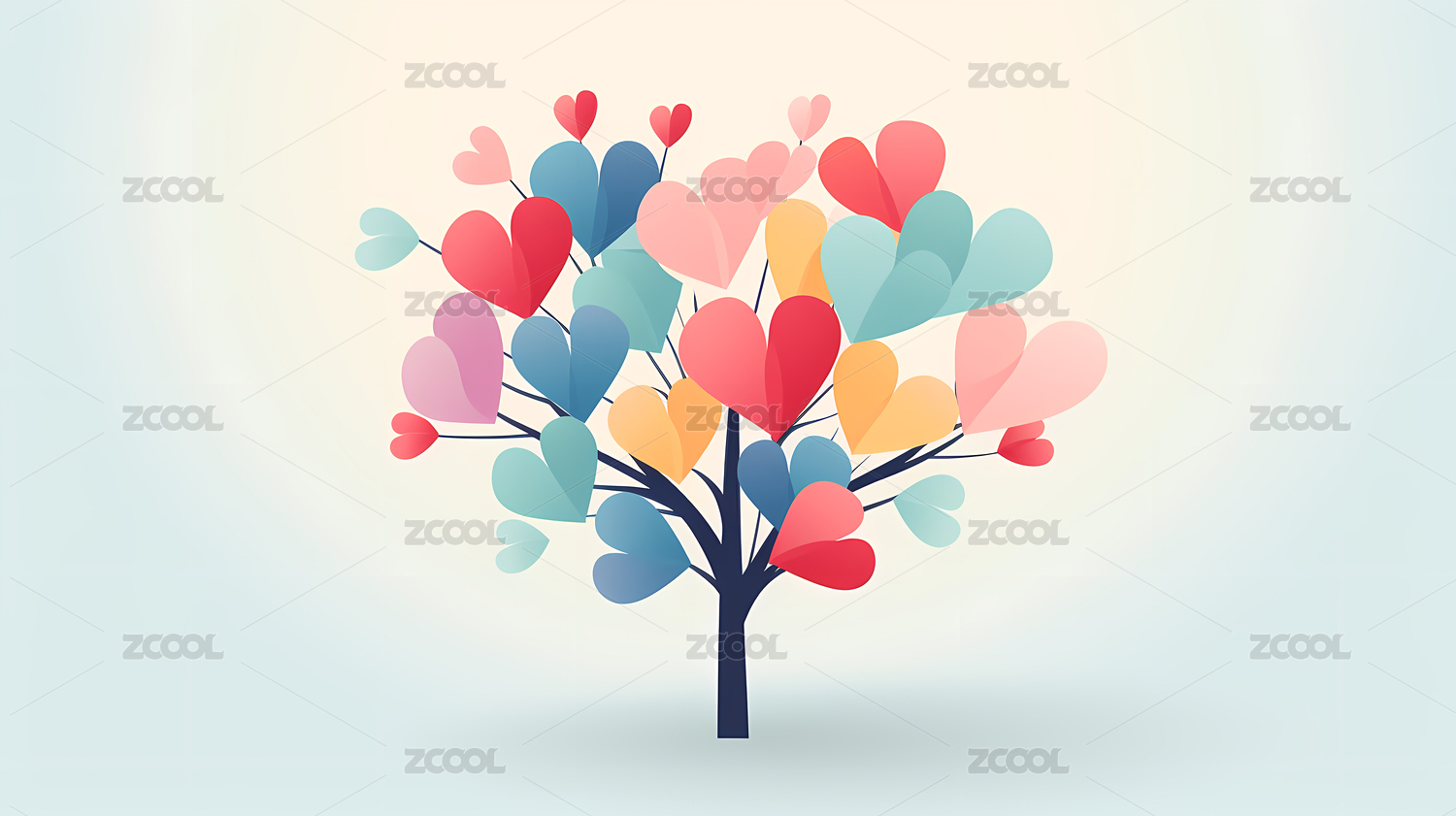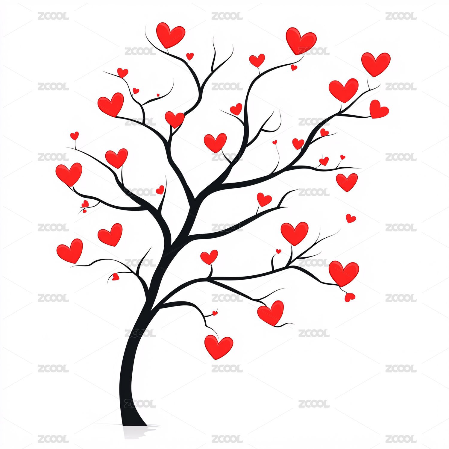 浪漫爱心树插画
