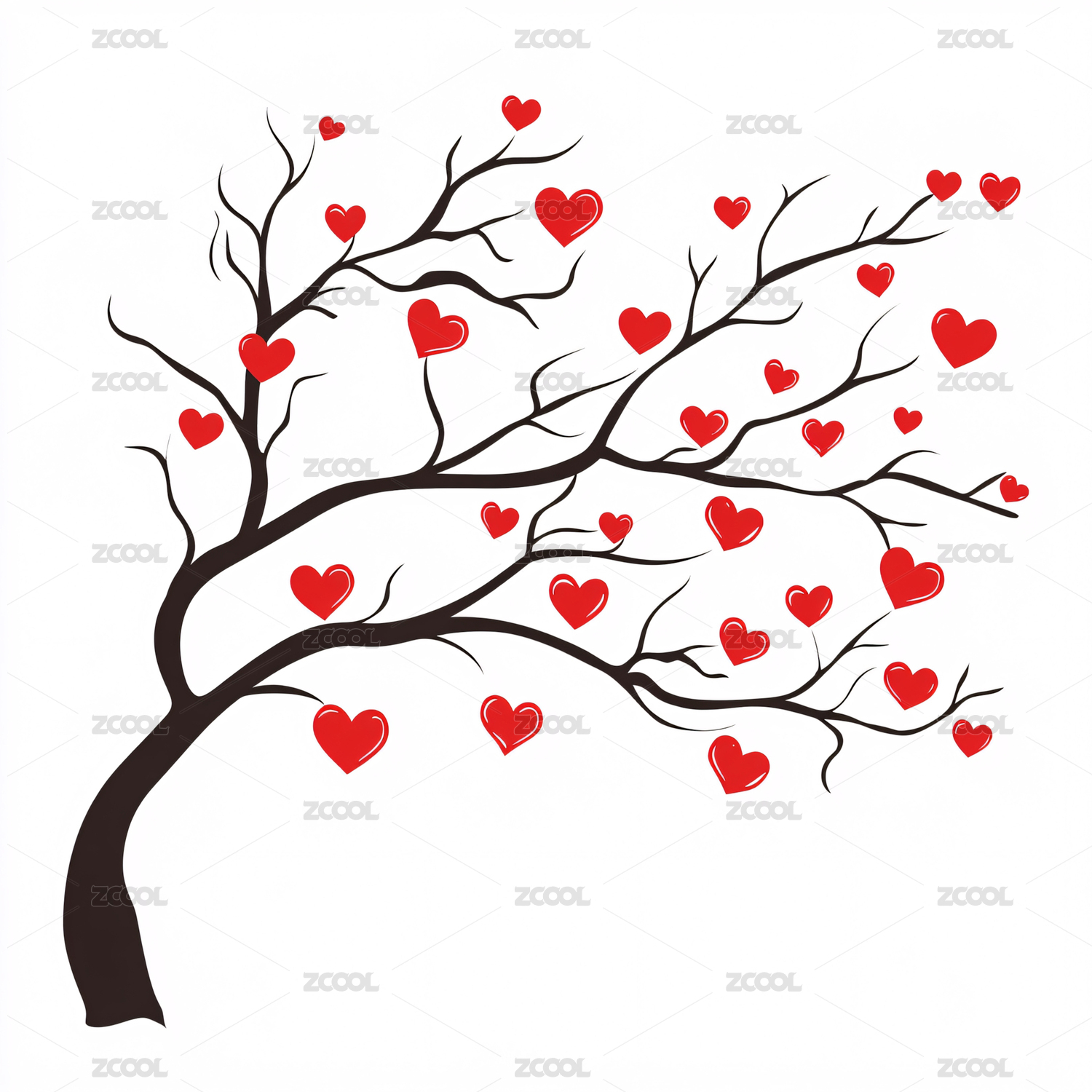 爱心树枝叶图案