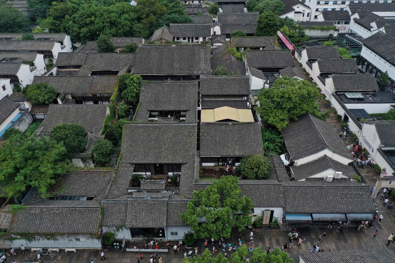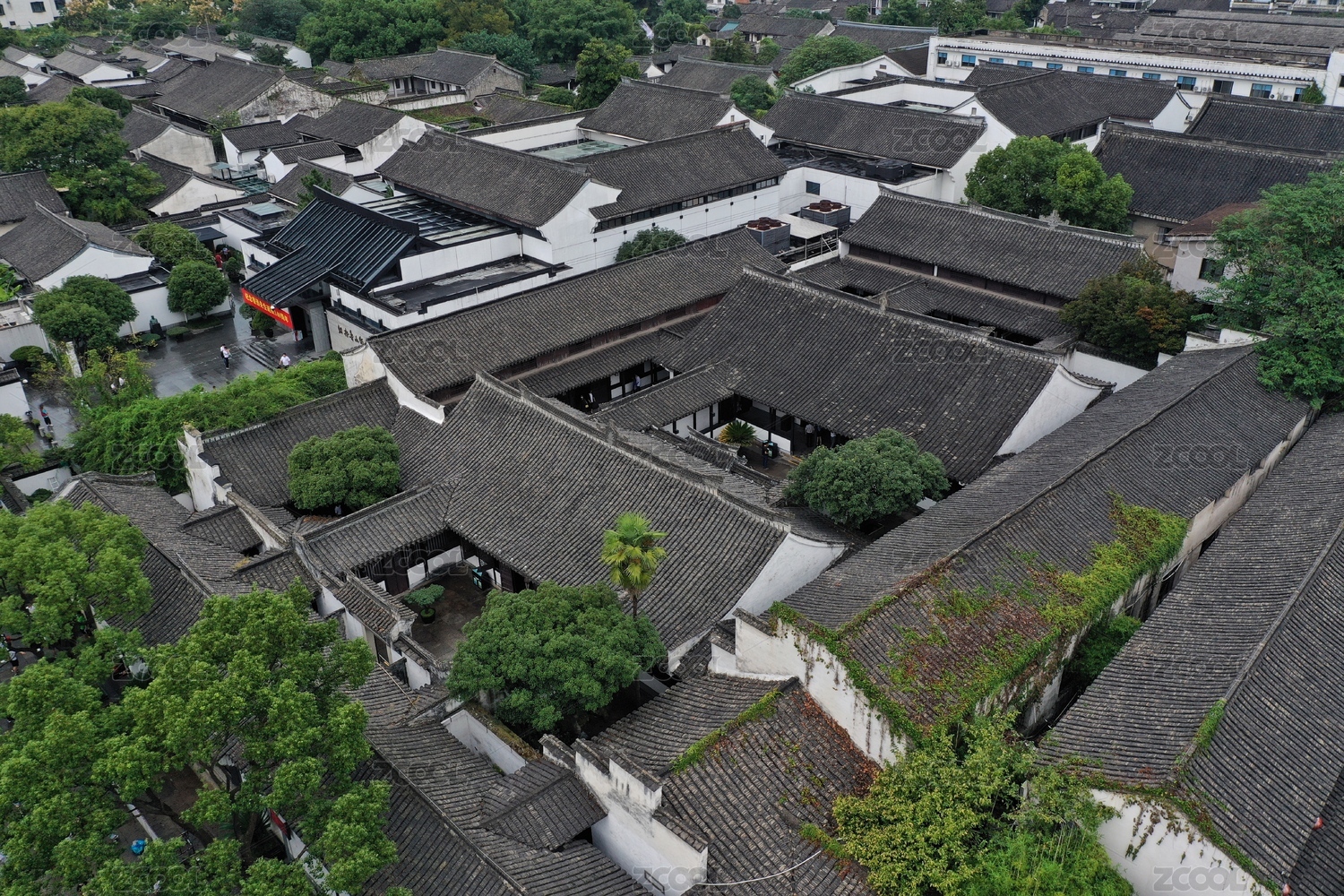 浙江,绍兴,航拍,鲁迅故居,旅游,旅游目的地,景点,古建筑,瓦顶,民居