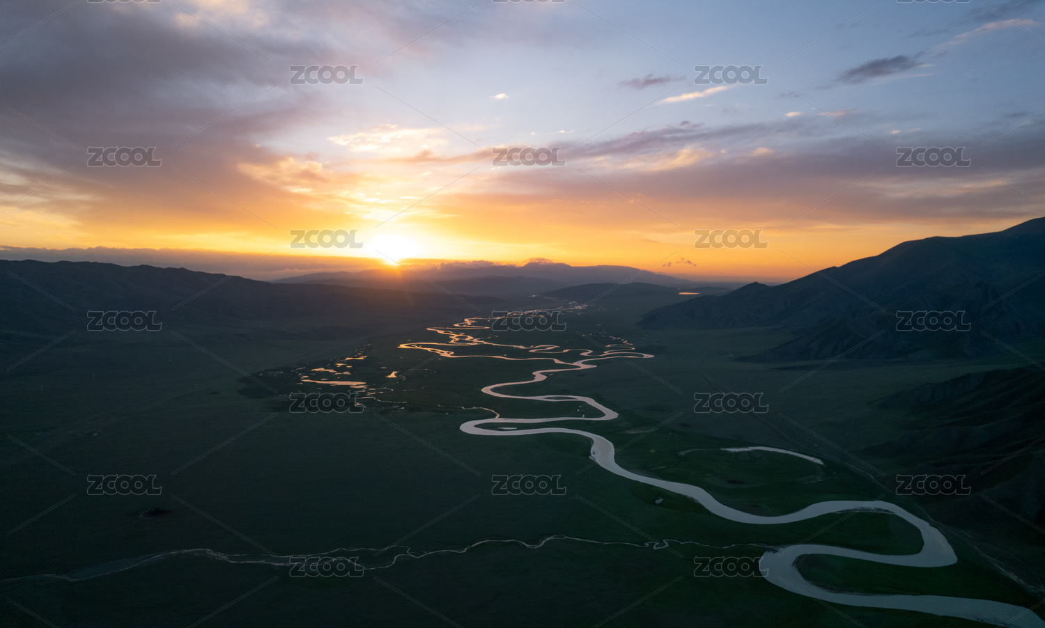 甘肃甘南玛曲阿万仓湿地蜿蜒河道草原航拍