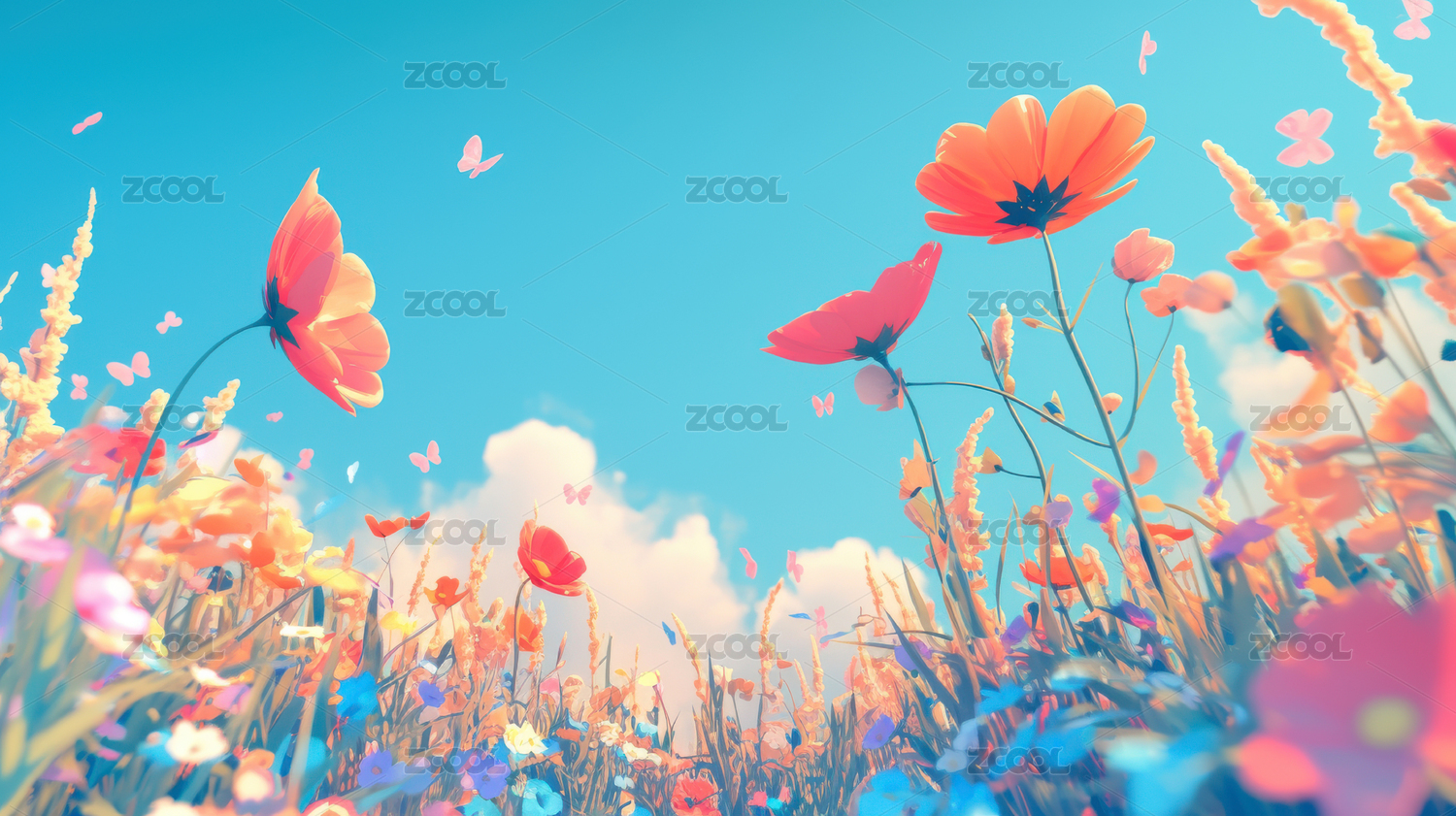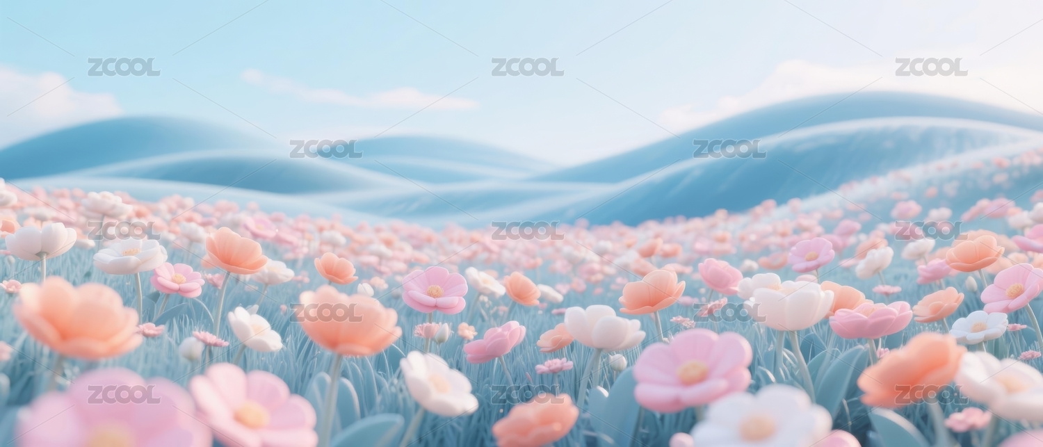 浪漫彩色花园花海花朵卡通插画背景壁纸