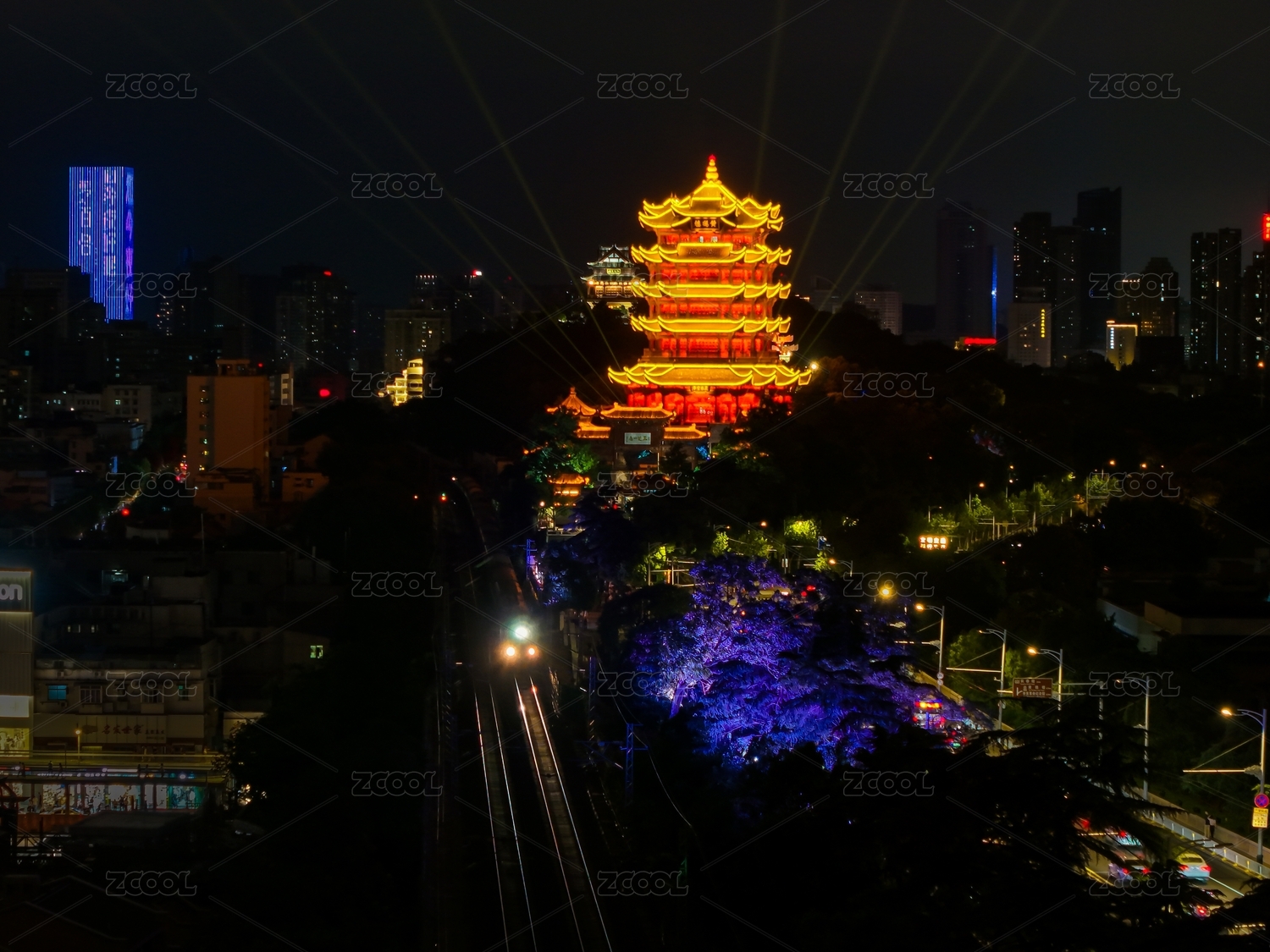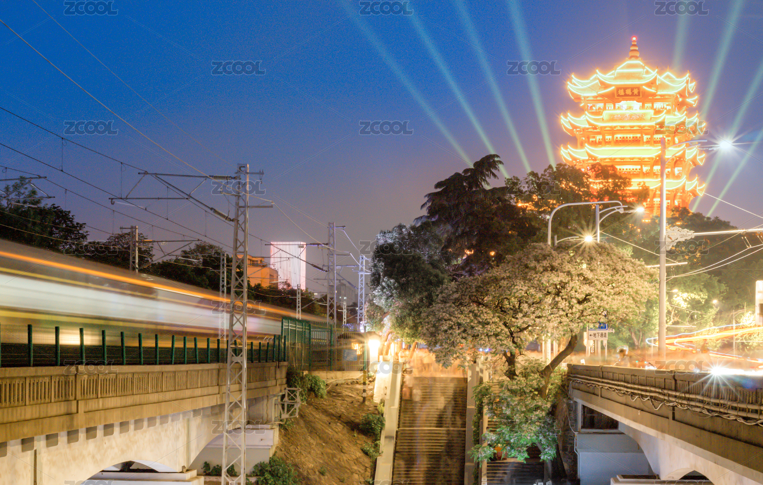 武汉,黄鹤楼,夜景,静谧,温馨,交通,公交车,光轨,景点,和谐号