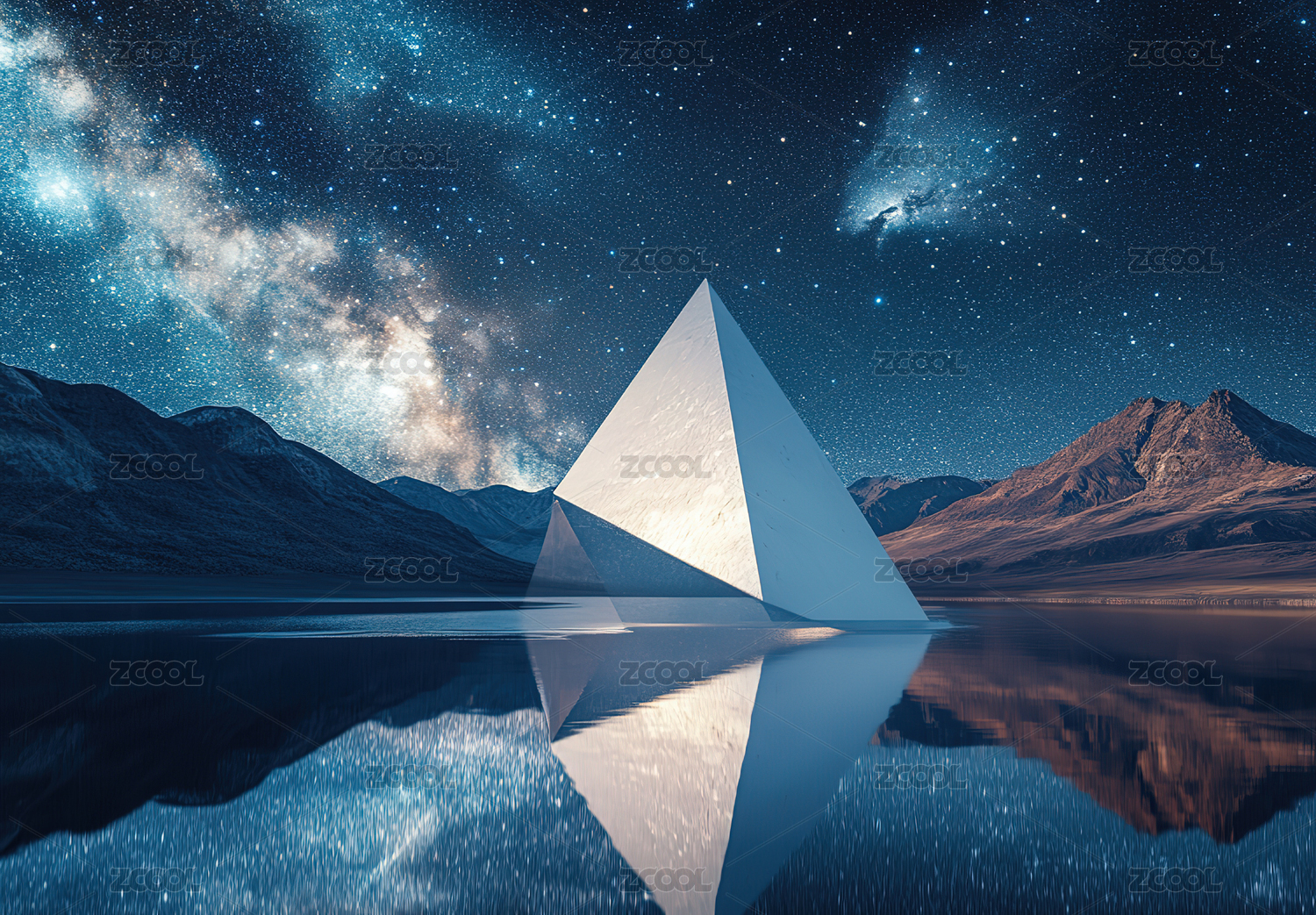 科幻科技荒凉外星球悬浮太空舱3D立体插画