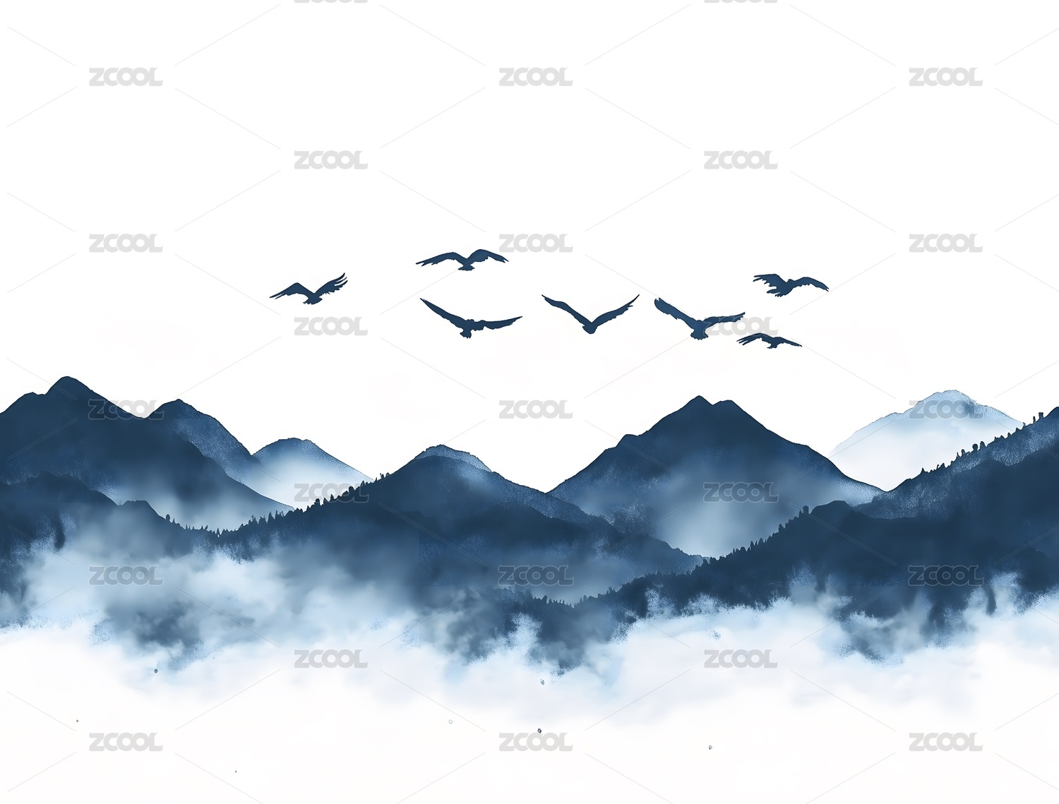 中国风山峰飞鸟国画水墨留白意境