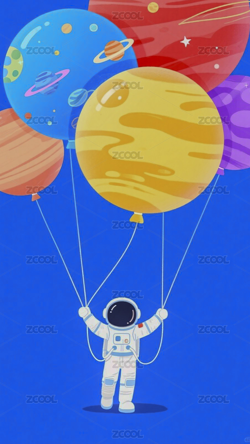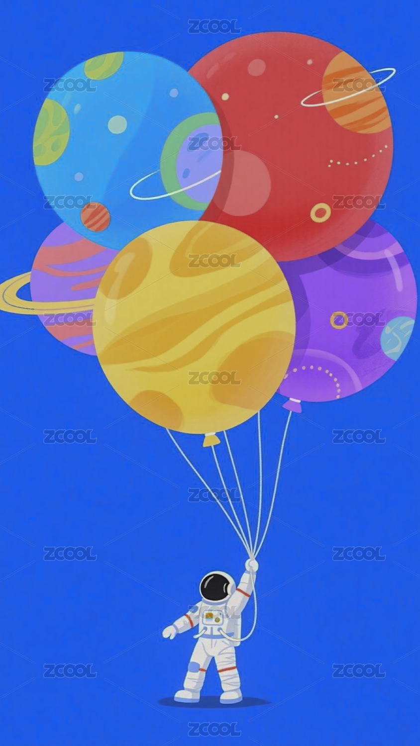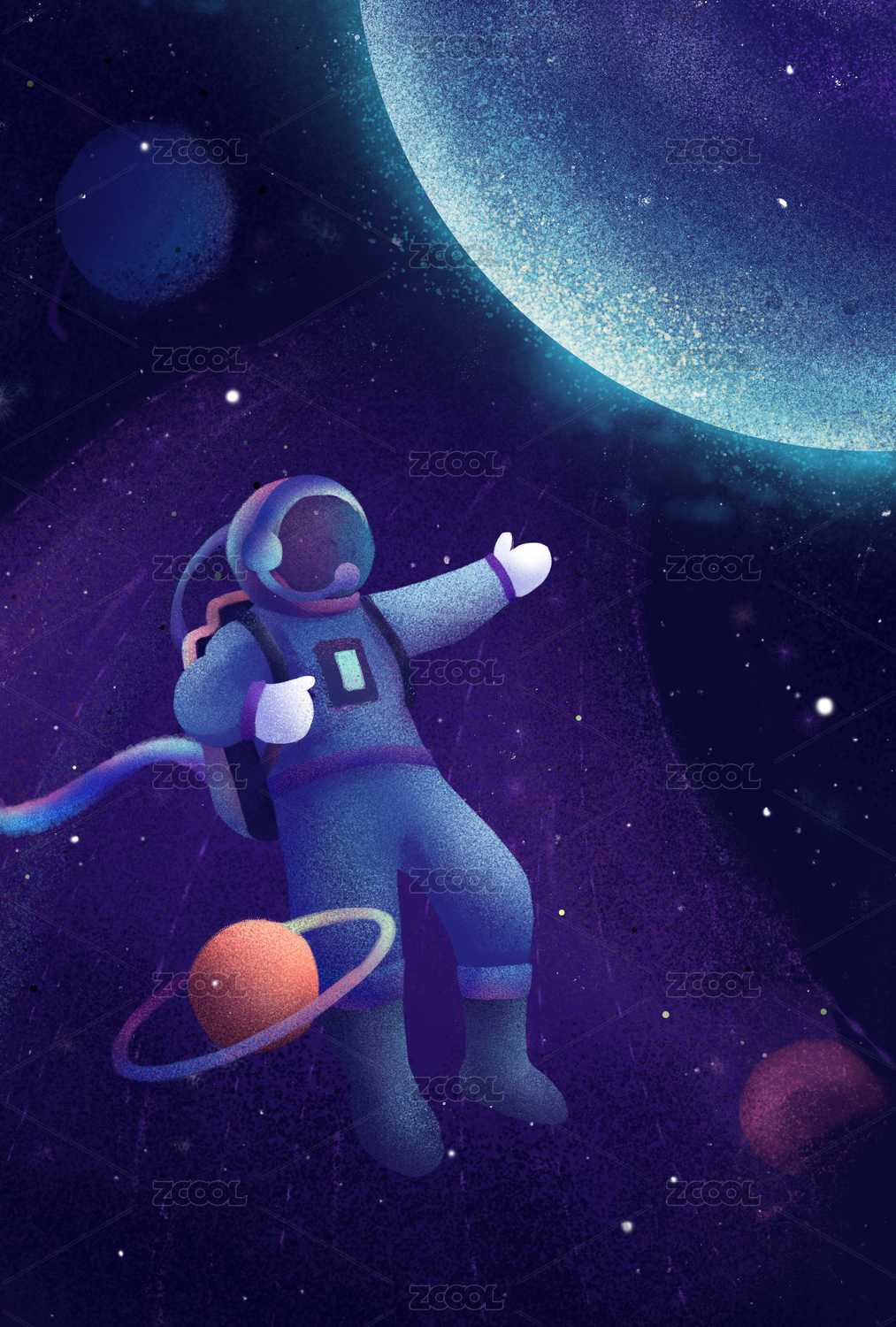 宇航员漂浮在梦幻蓝色星际卡通插画海报