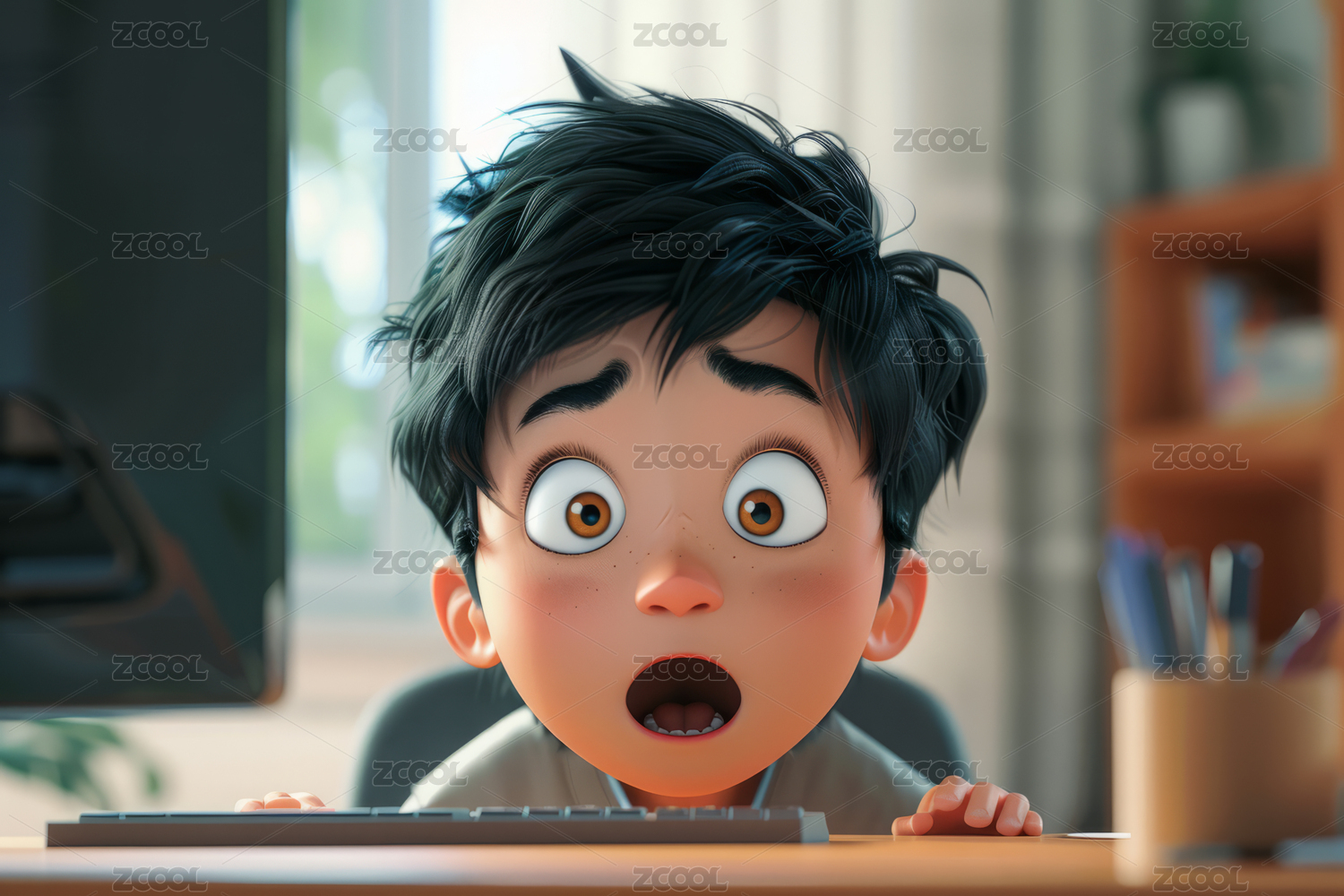 3D,人物,学习,AIGC202402,卡通,认真,室内,学生,插画,背景
