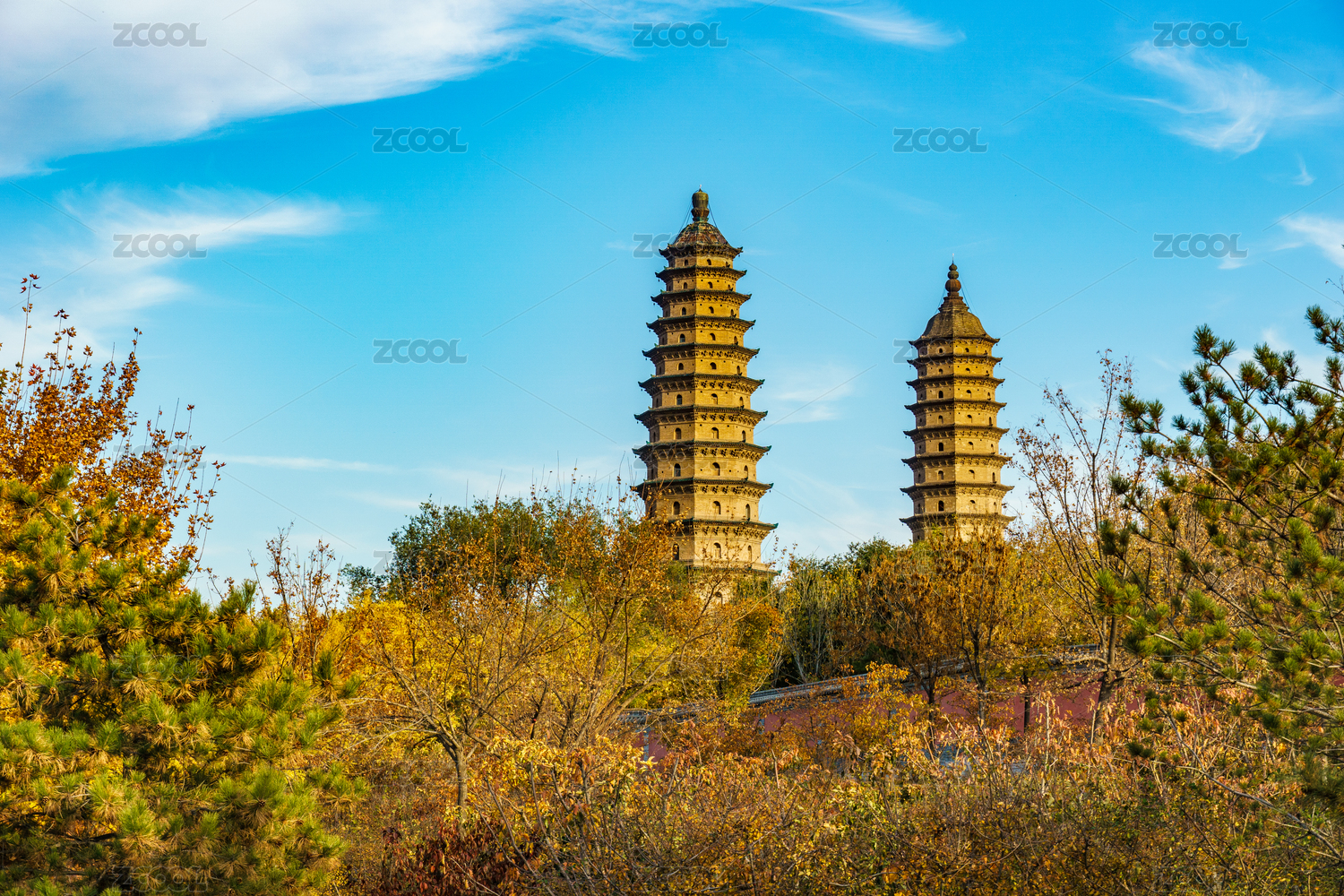 中国山西太原市郝庄双塔寺(永祚寺)风光