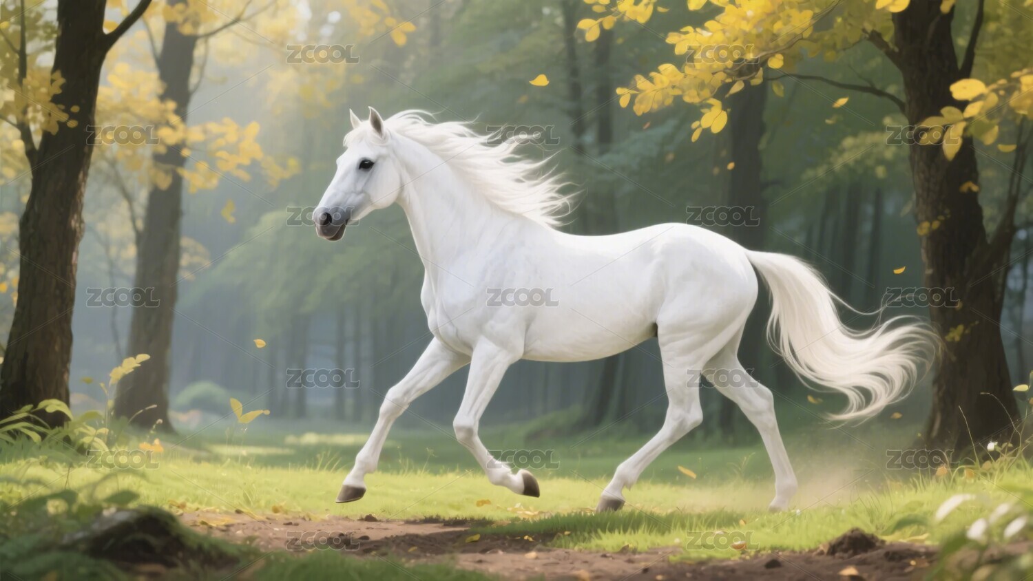 水彩画, 艺术,独角兽, 森林, 树木, 梦幻, 自然, 魔法,宁静, 美丽