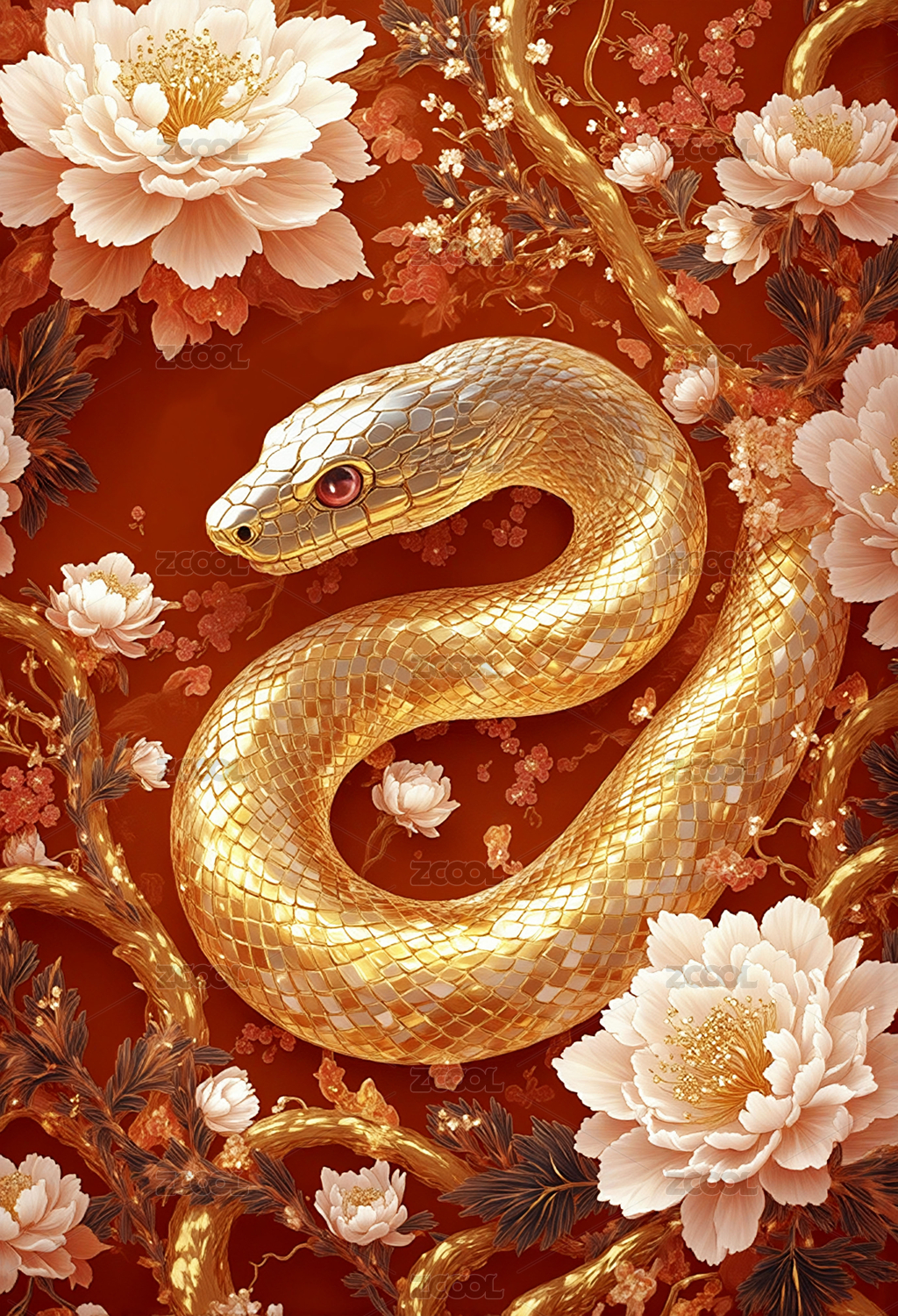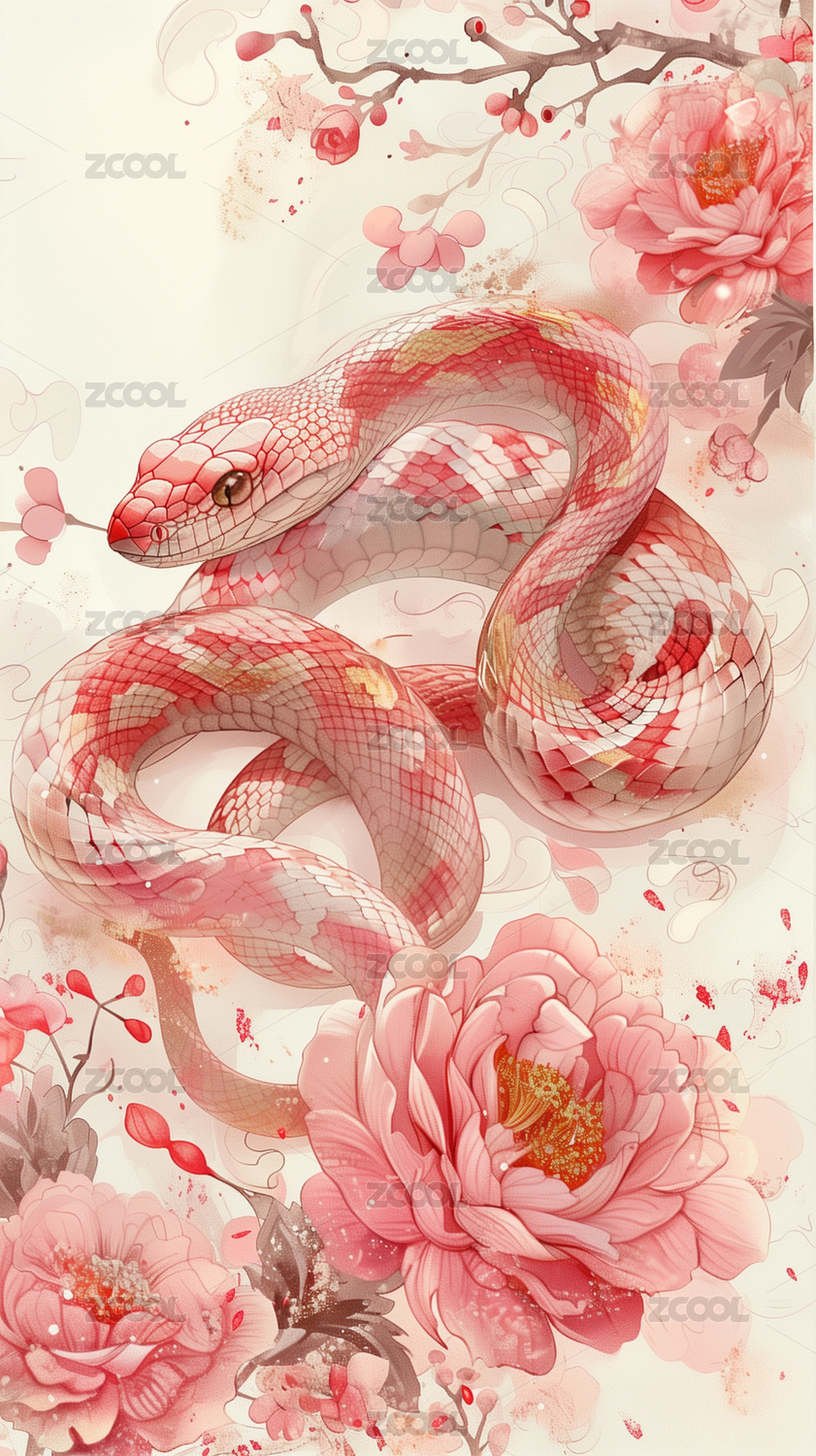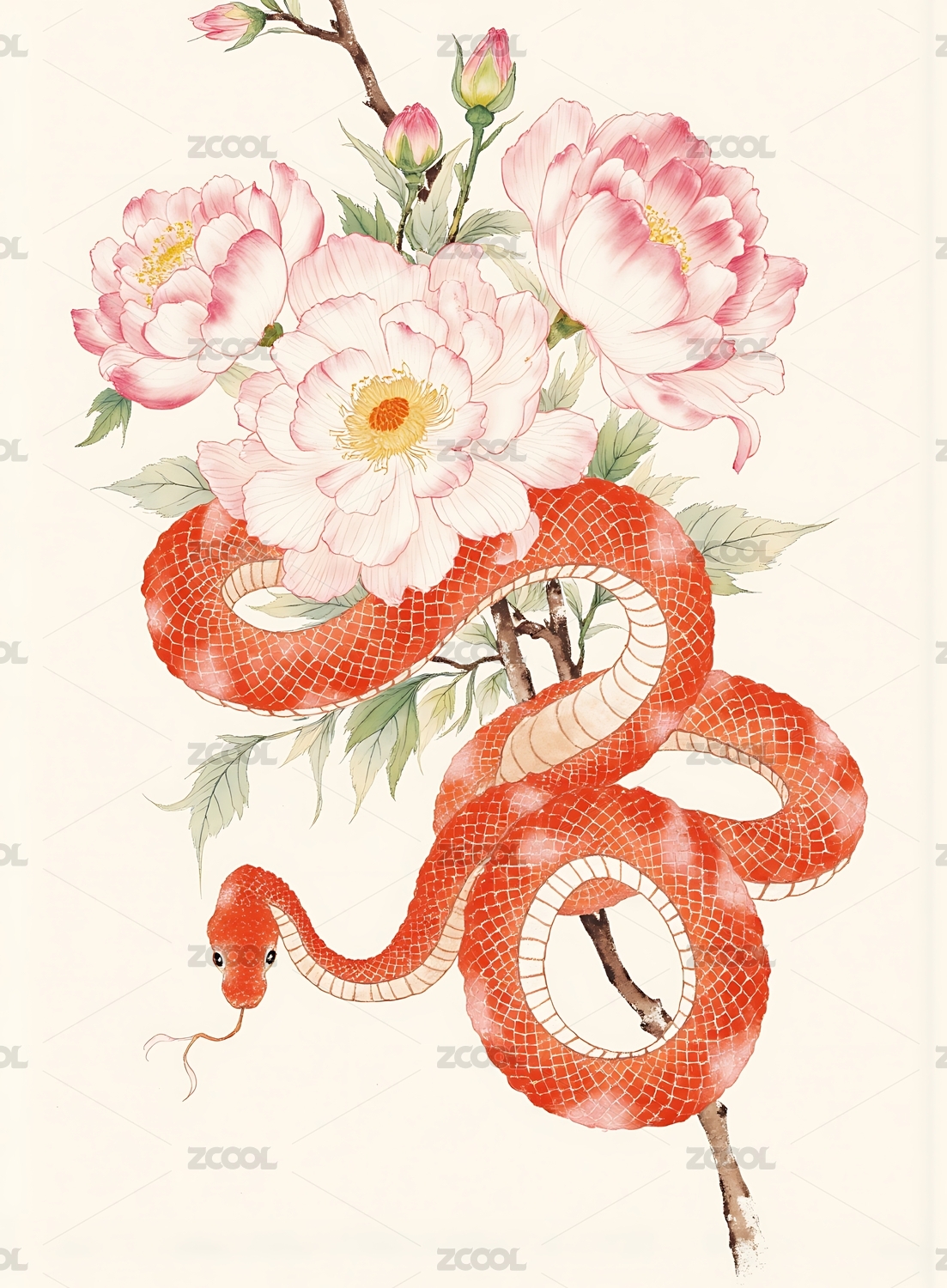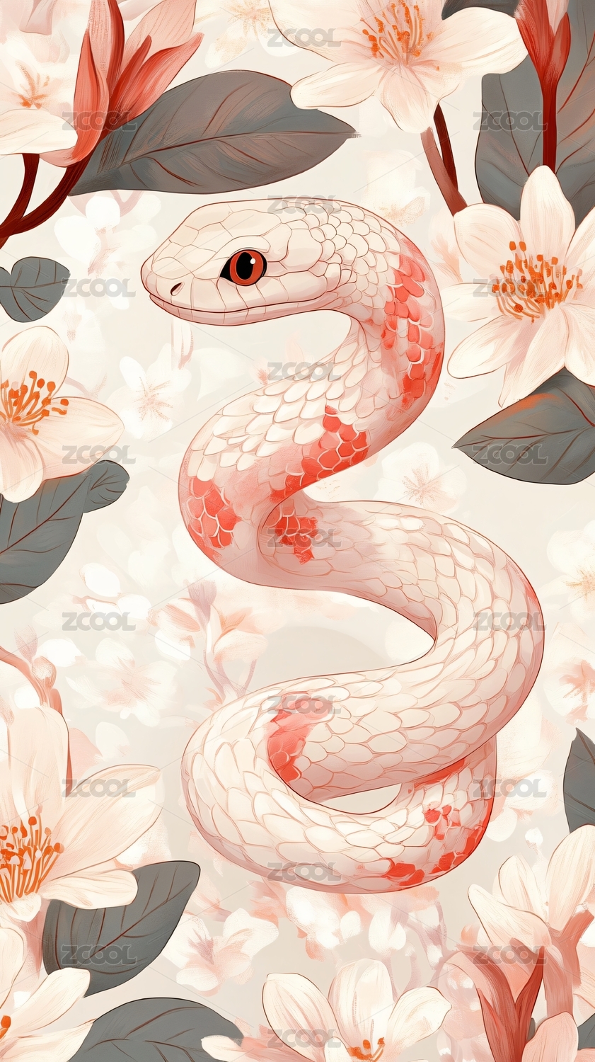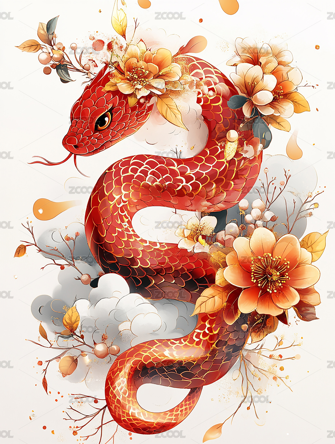 蛇,红色,插画,花,年,生肖蛇,抽象,动物,花草,卡通