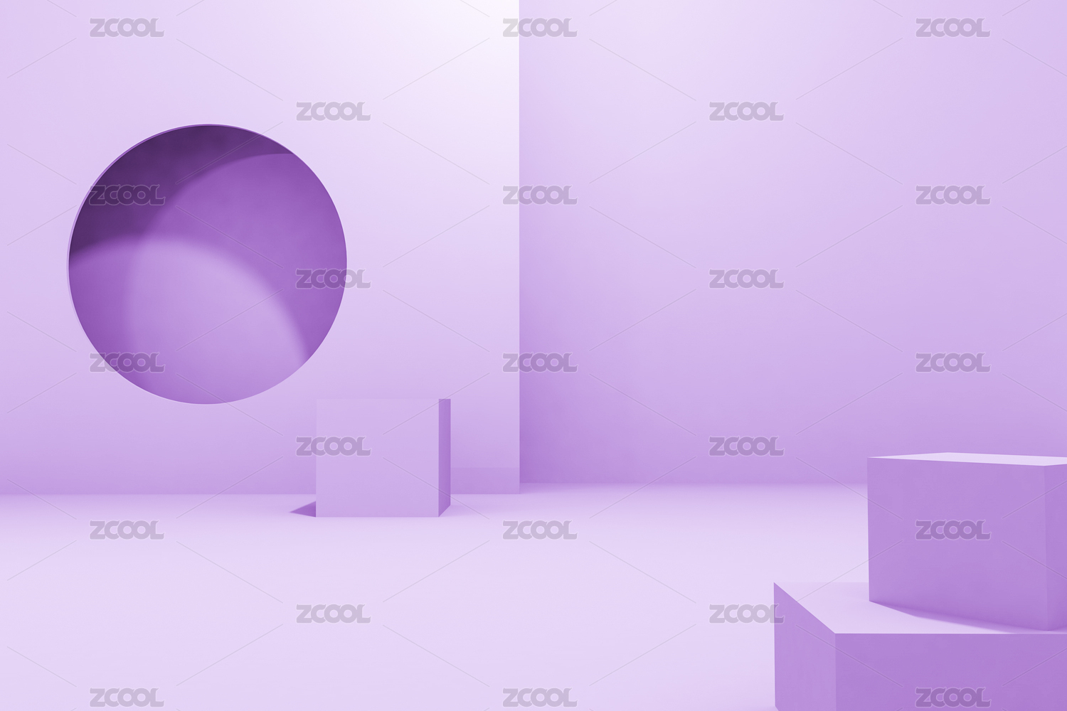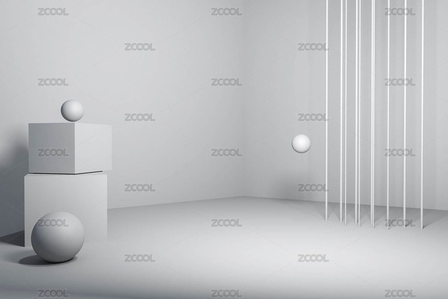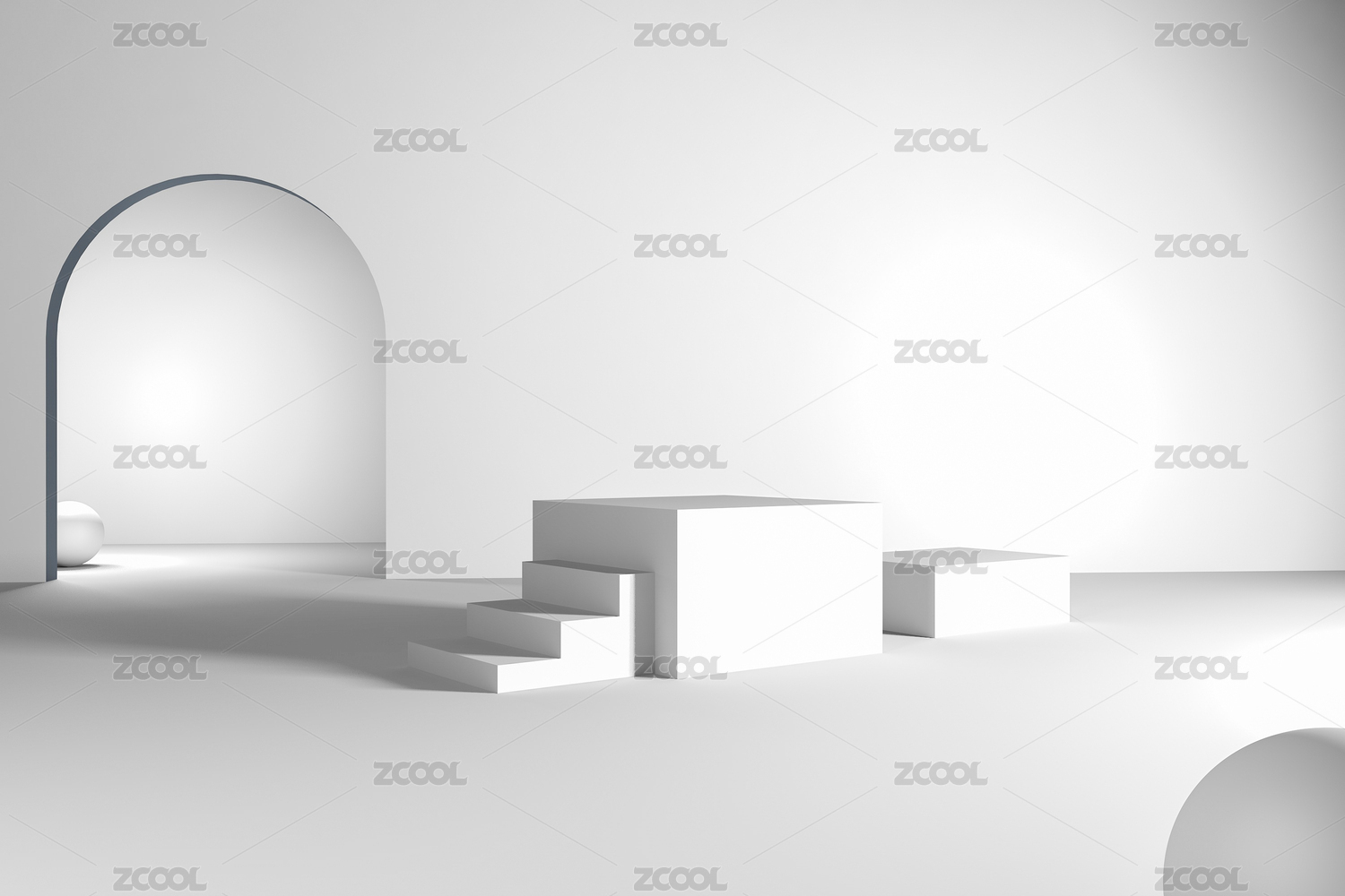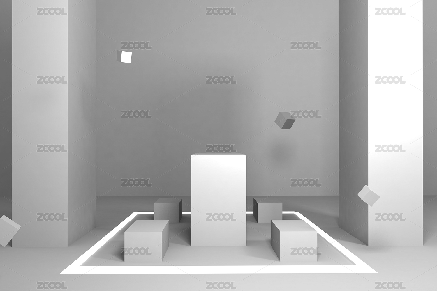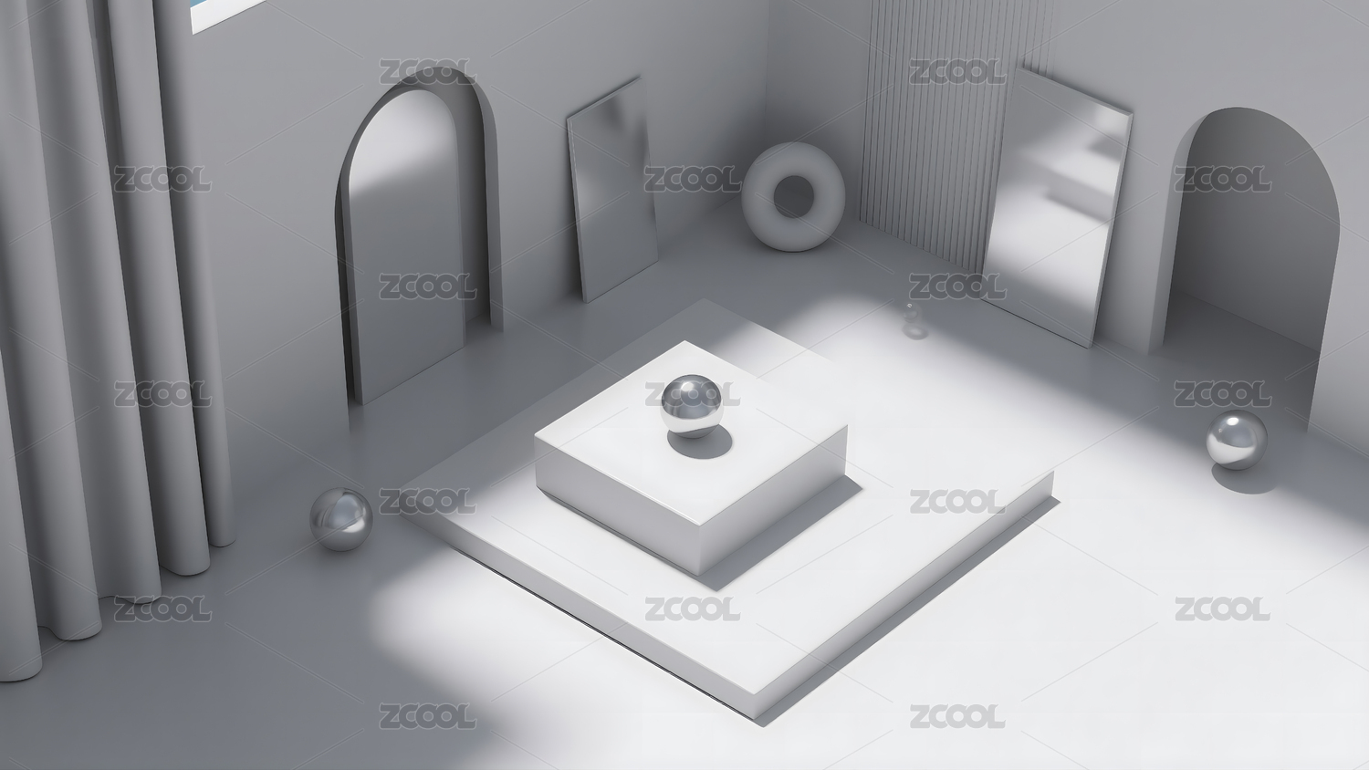 三维室内摆件装饰设计与中间的圆柱 三维渲染