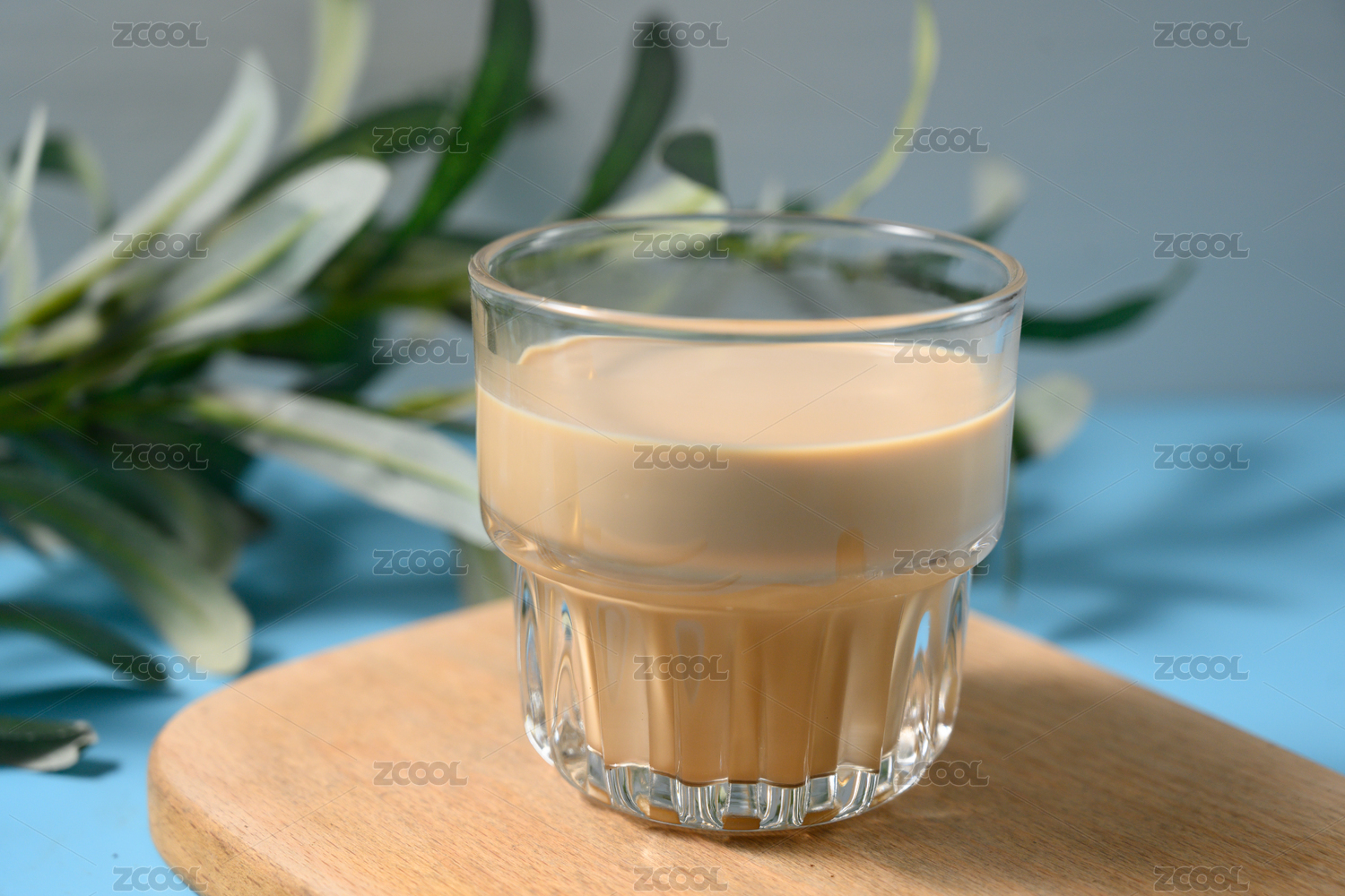 桌面上的杯子里的香气四溢的奶茶