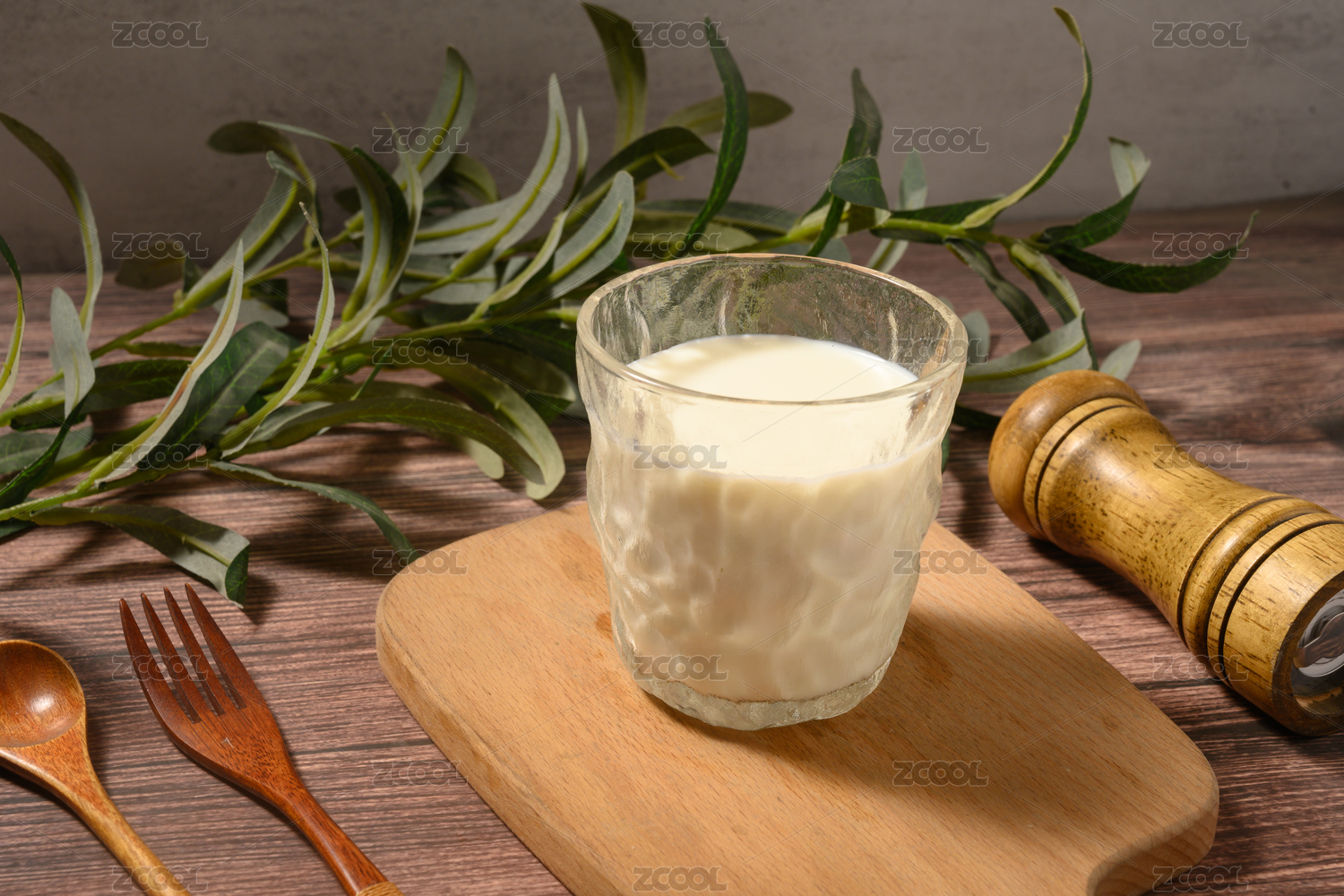 桌面上的杯子里的美味可口的牛奶