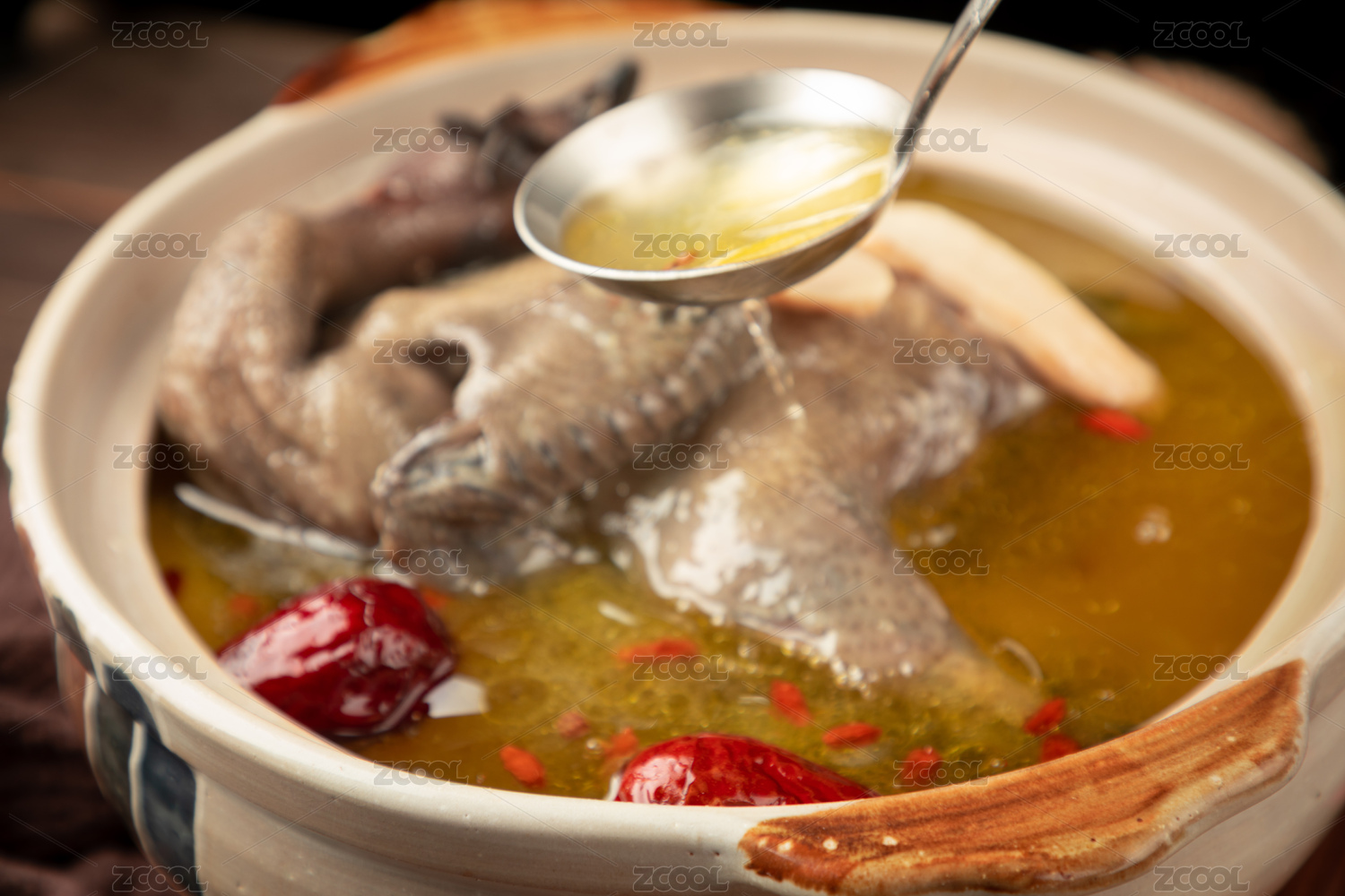 白色瓷盘装的家常清炖枸杞北京油鸡