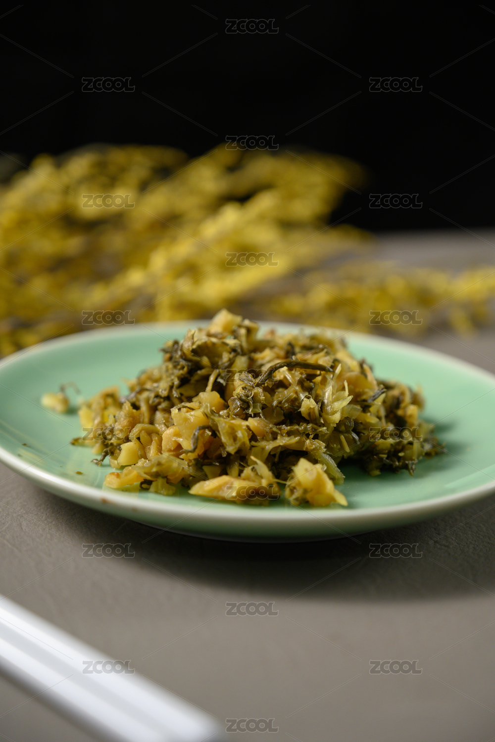 桌面上的盘子里的美味可口的宁波雪菜