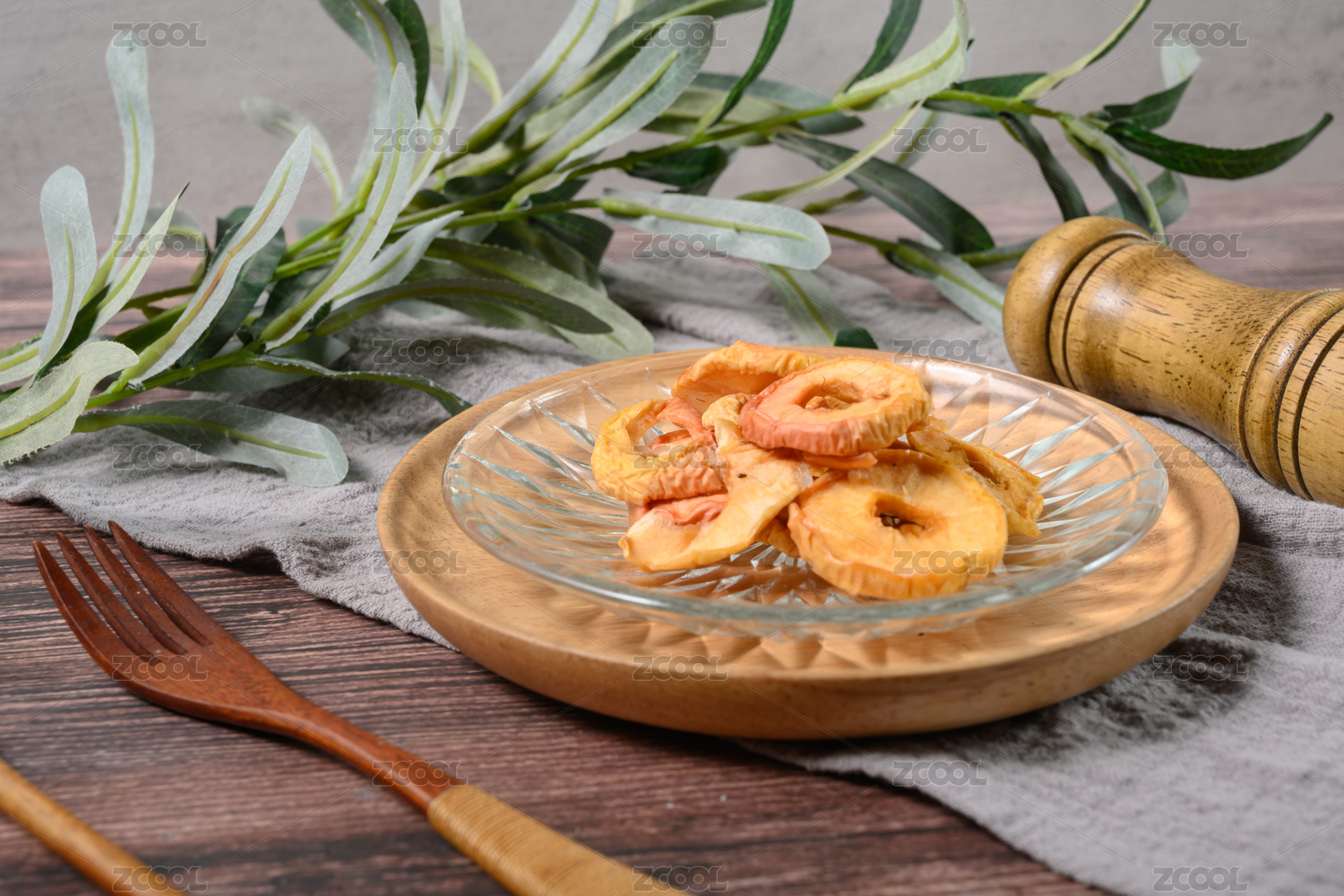 桌面上的盘子里的美味可口的沙果干