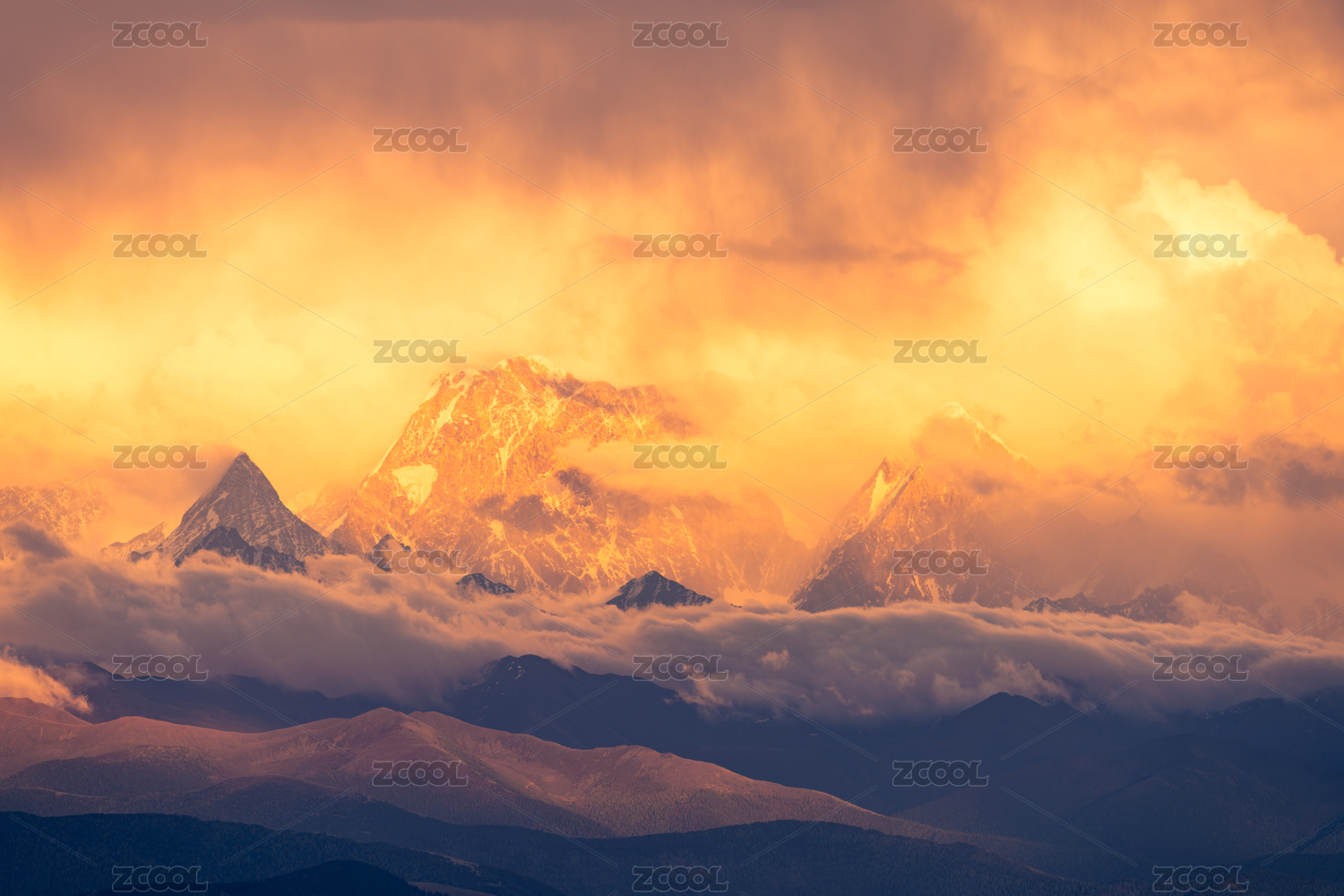 中国四川甘孜州川西子梅垭口贡嘎雪山风光