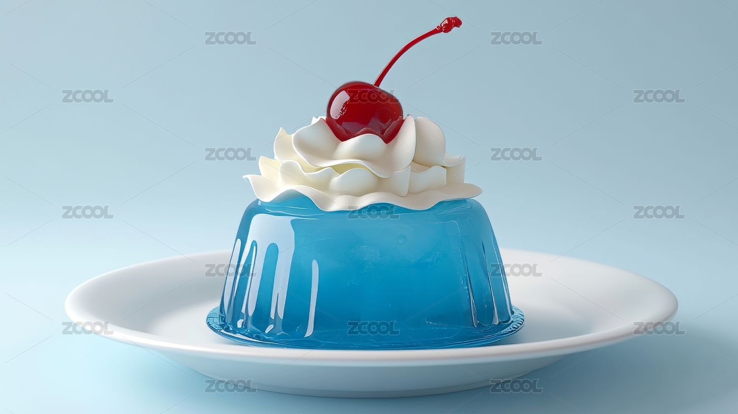 一块鲜艳多彩的奶油蛋糕放在白瓷盘中