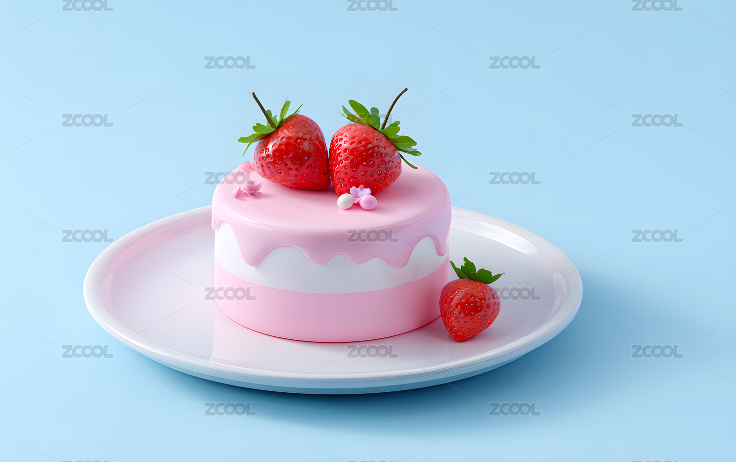 可爱治愈多巴胺生日蛋糕3D卡通立体插画