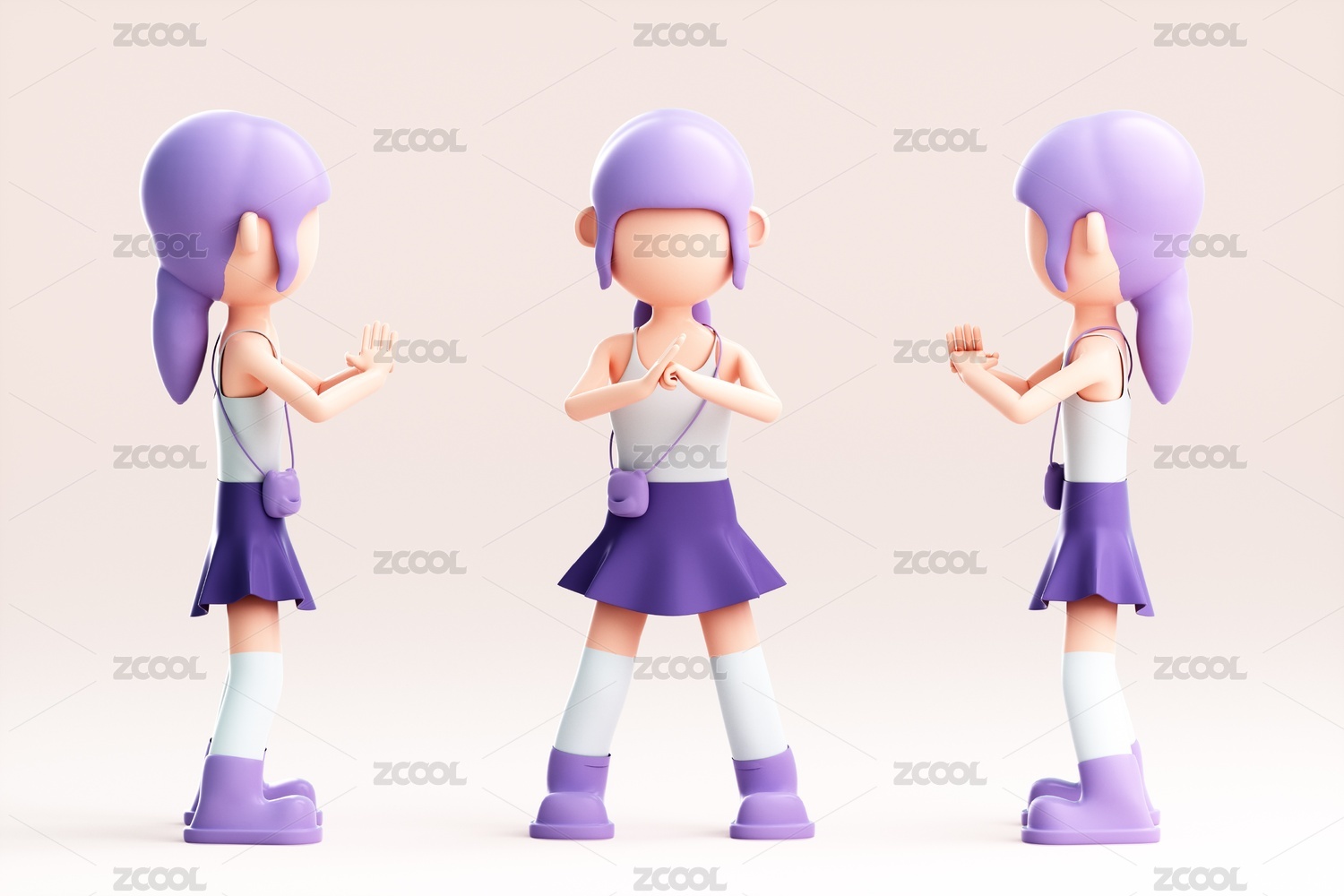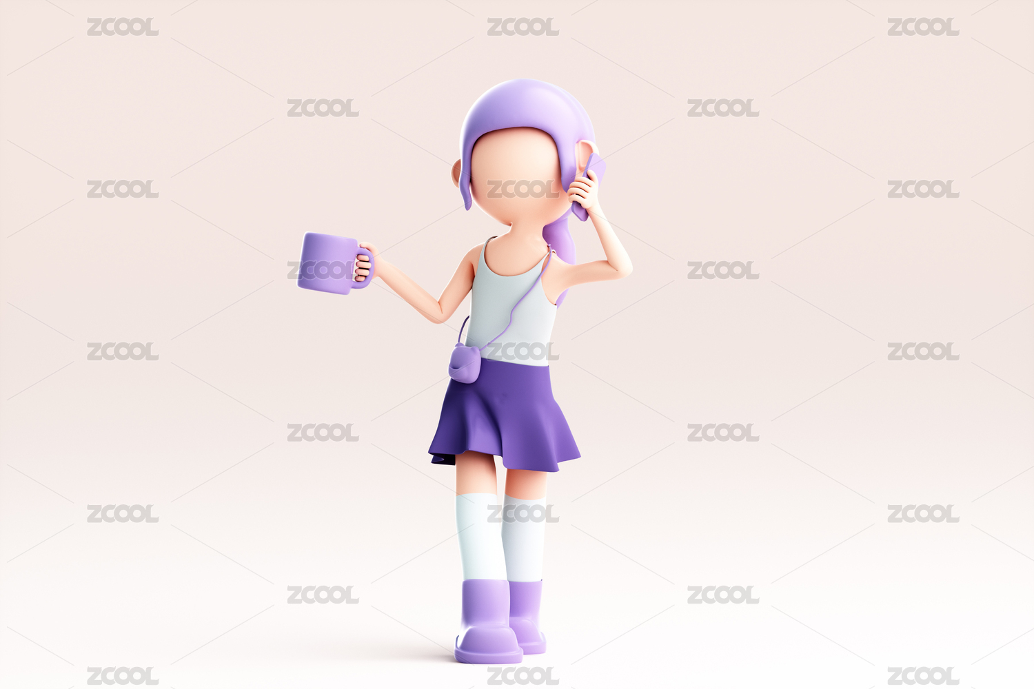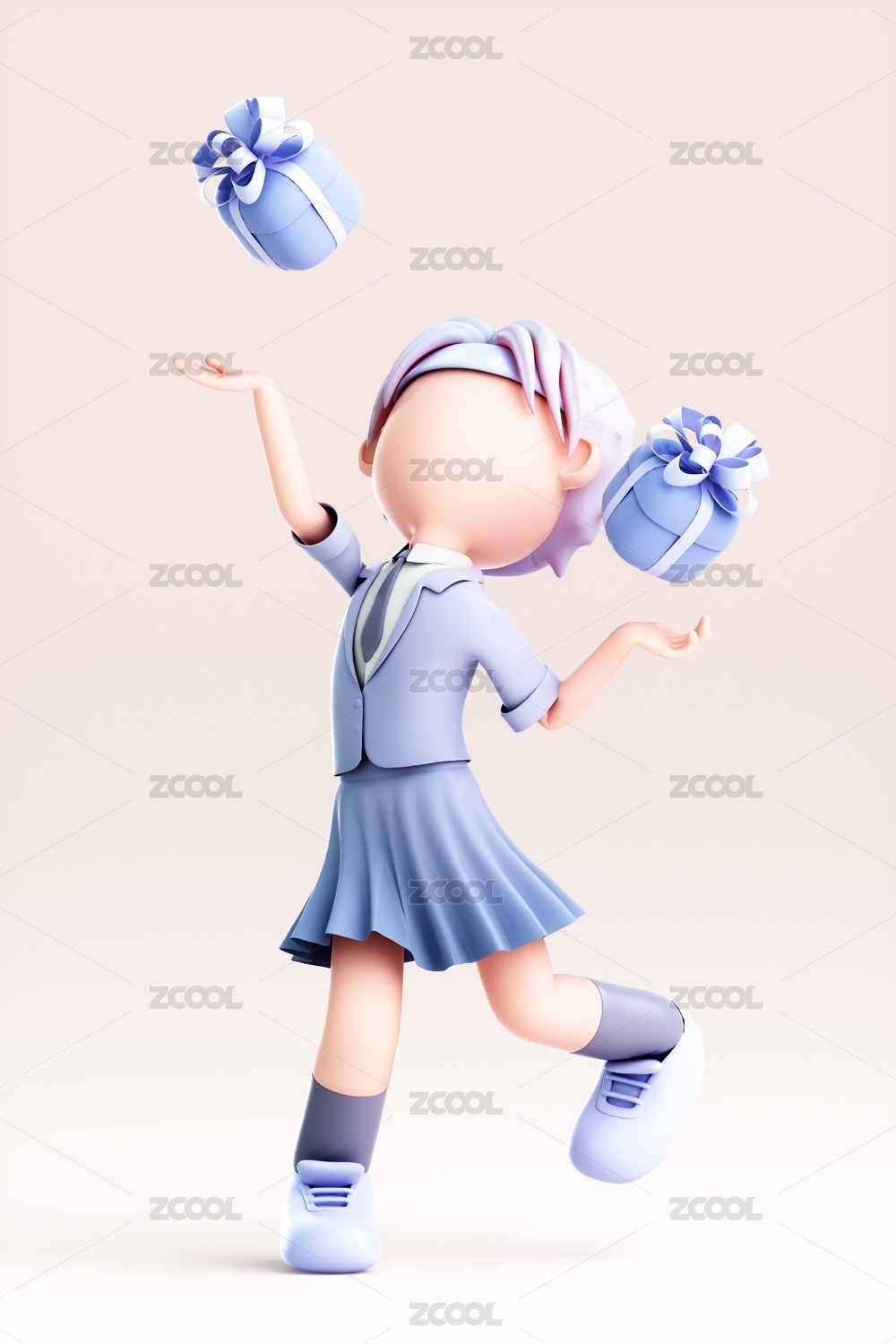 3D,阳光,青春,女孩,女人,卡通,可爱,人物,情绪,插画