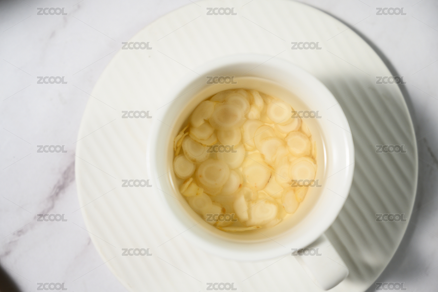 桌面上的杯子里的的甘甜可口的西洋参茶