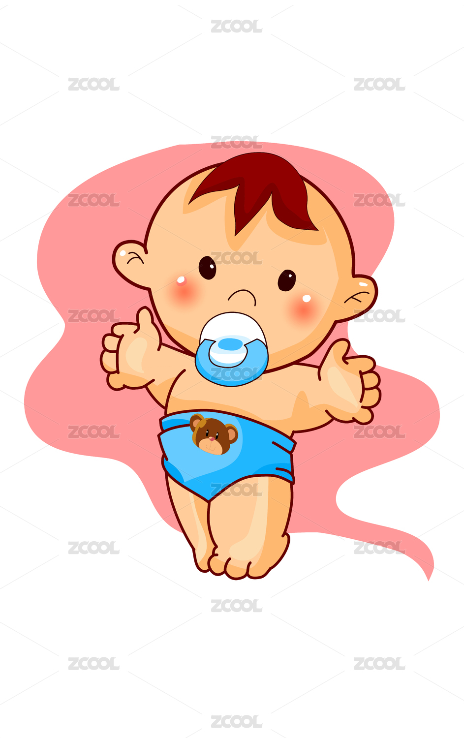 可爱的卡通矢量含着奶嘴的宝宝