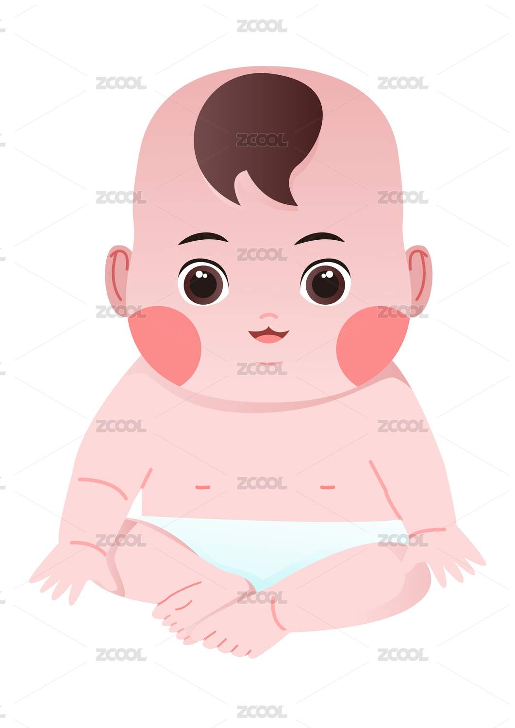 一个可爱的婴儿穿着尿布坐在地上 手绘插画