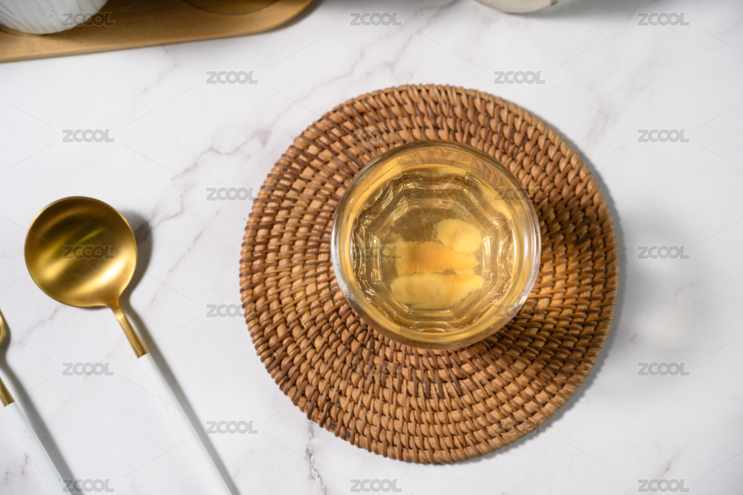 桌面上的杯子里的甘甜可口的天冬茶