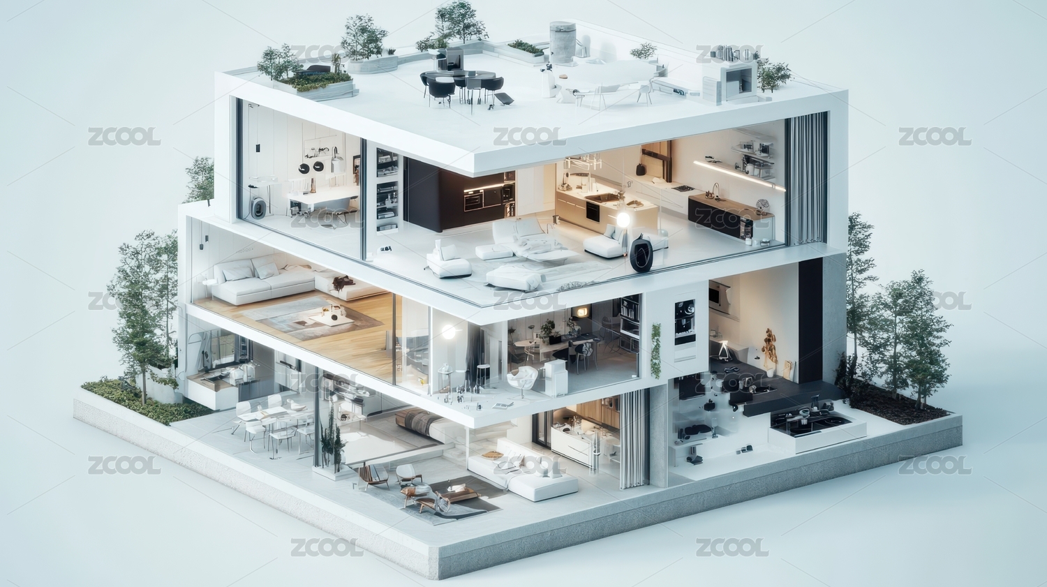 别墅,餐厅,当代,房屋,隔离,家具,建筑,平面图,起居室,三维