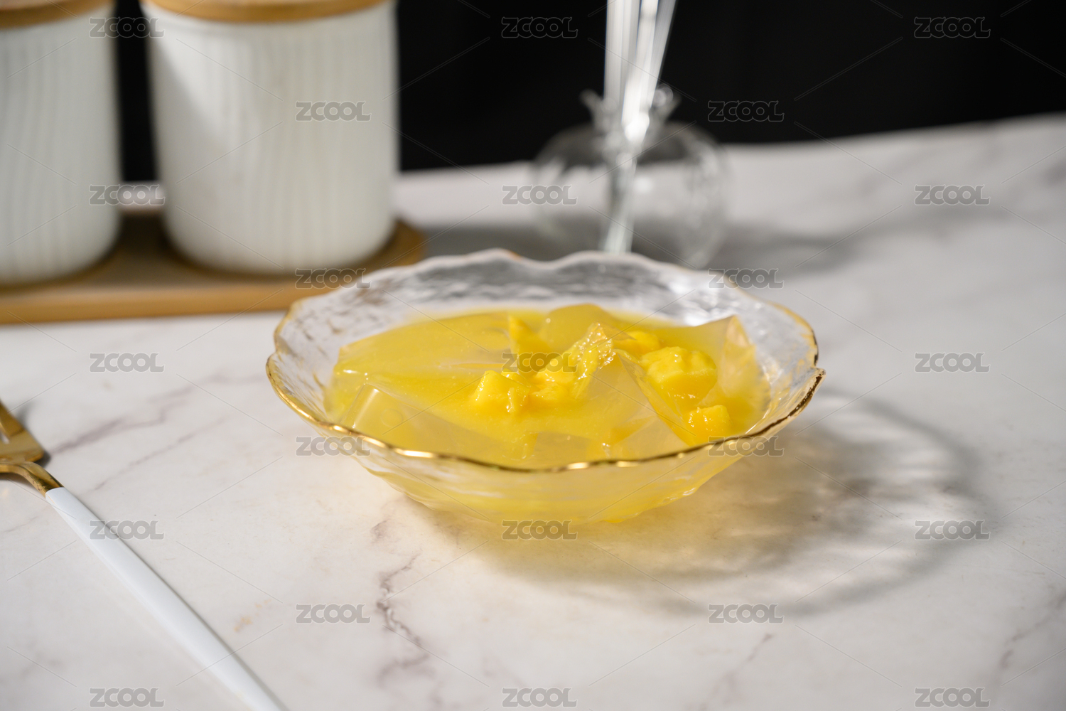 桌面上的盘子里的美味可口的冰糖炖桃胶