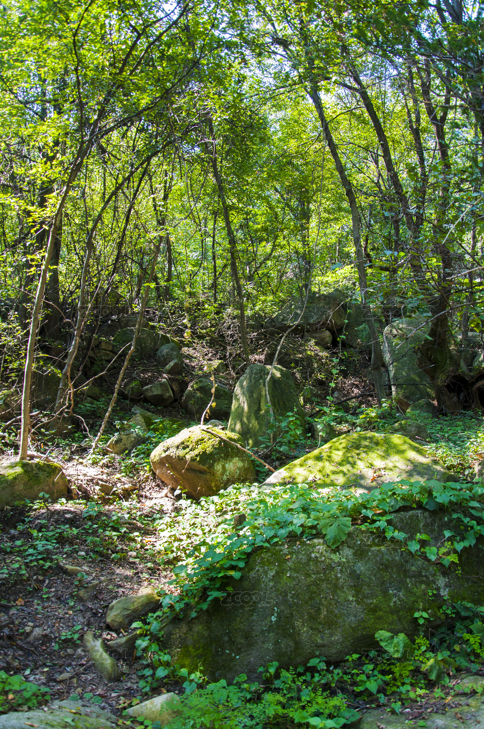 森林中长满青苔的岩石