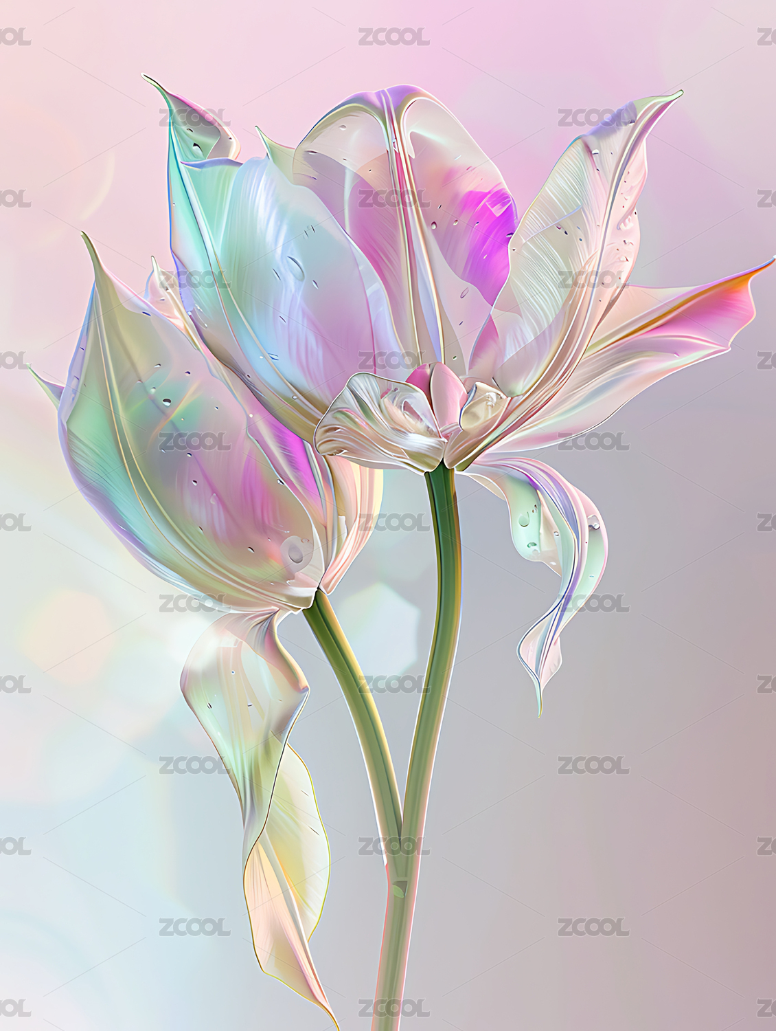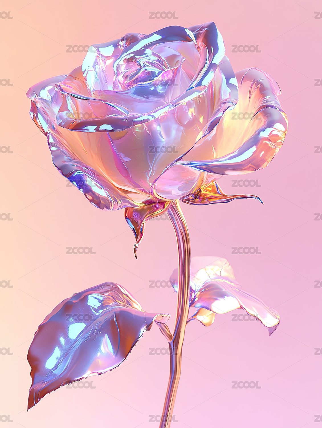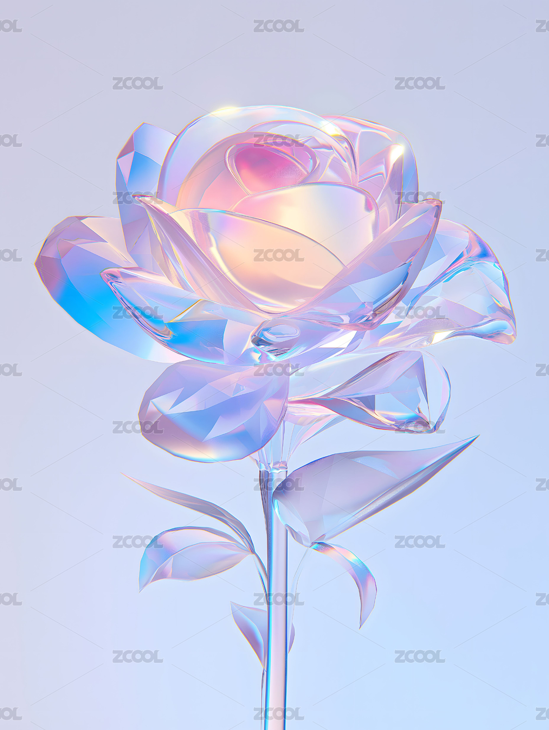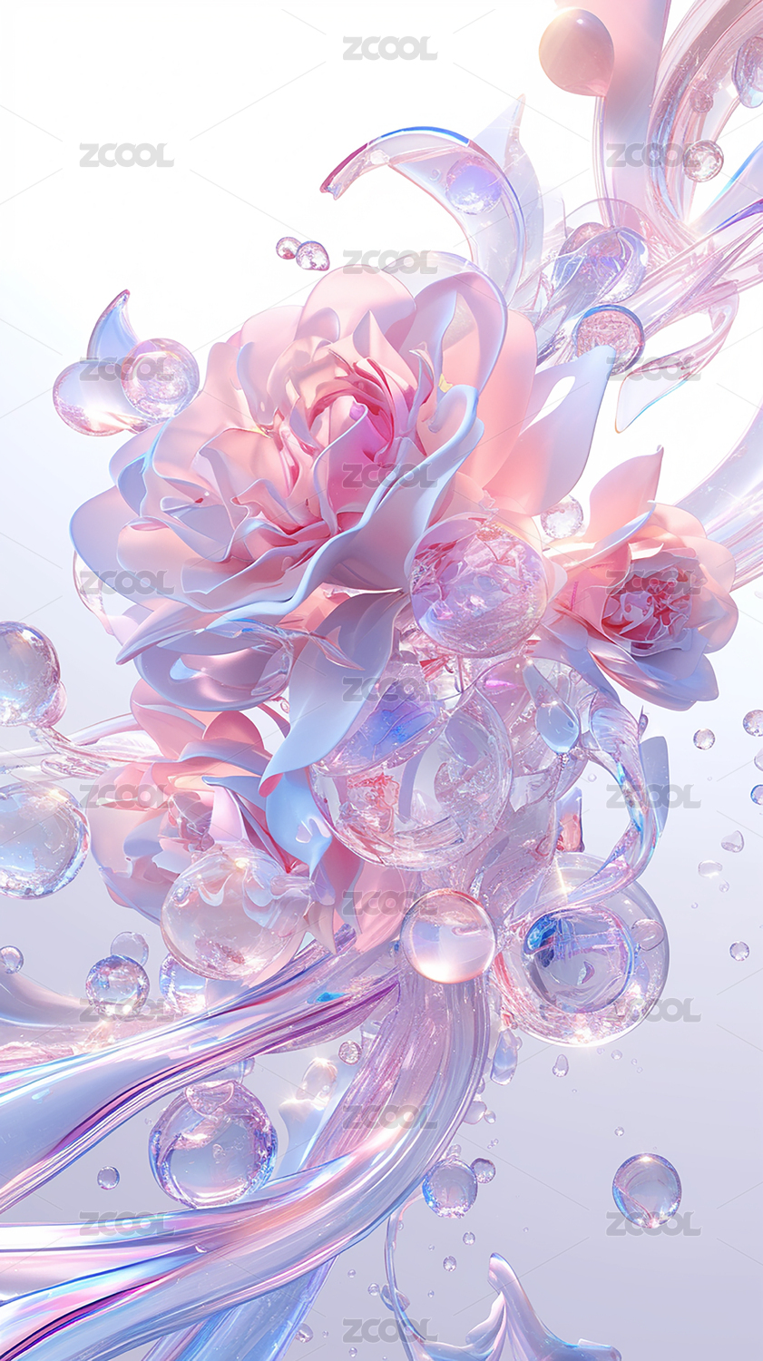 白底抽象玻璃粉色透明花卉植物3D立体插画