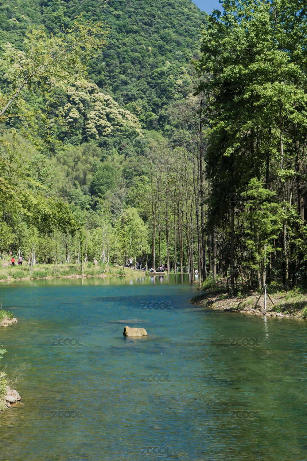 竹林倒影在湖面