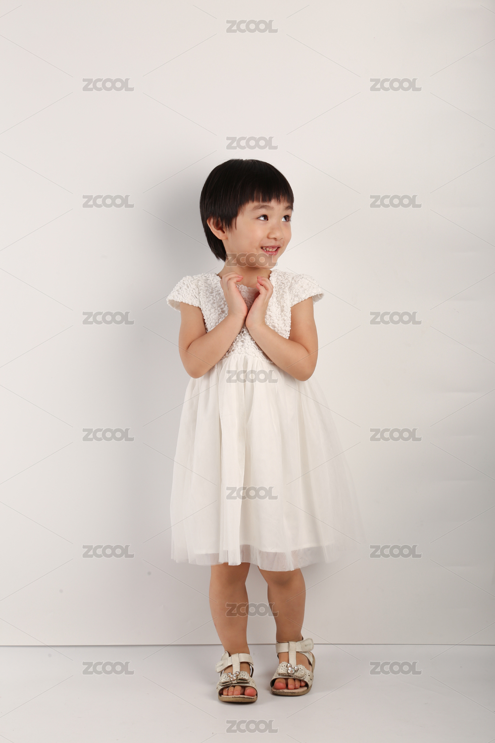 中国女宝宝穿白色裙子玩耍