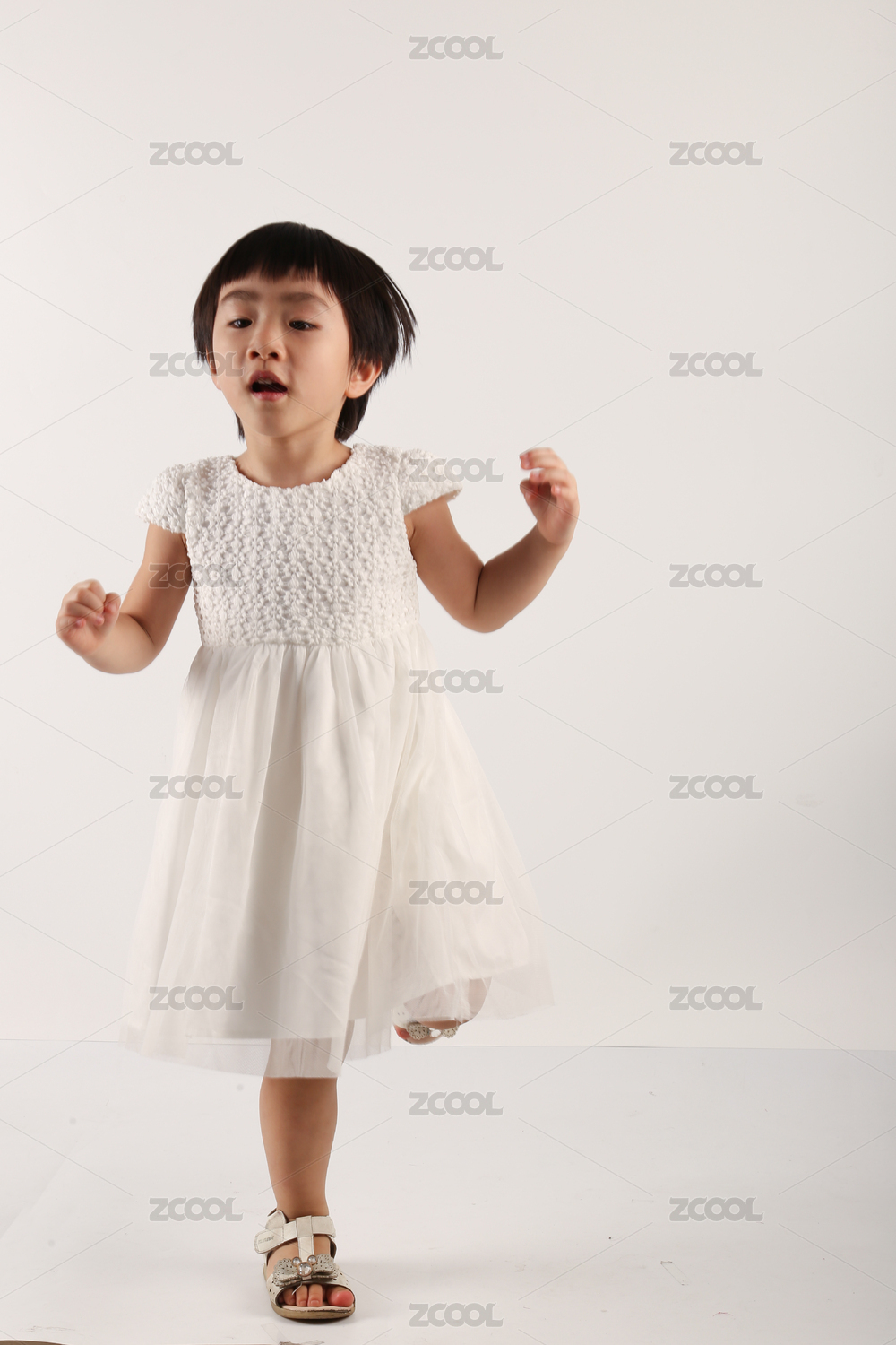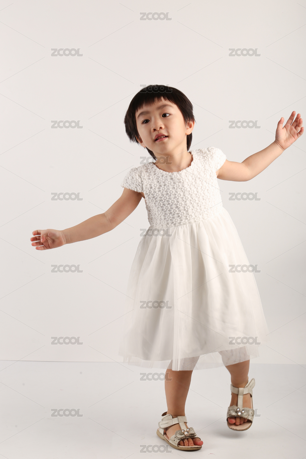 中国女宝宝穿白色裙子跳舞
