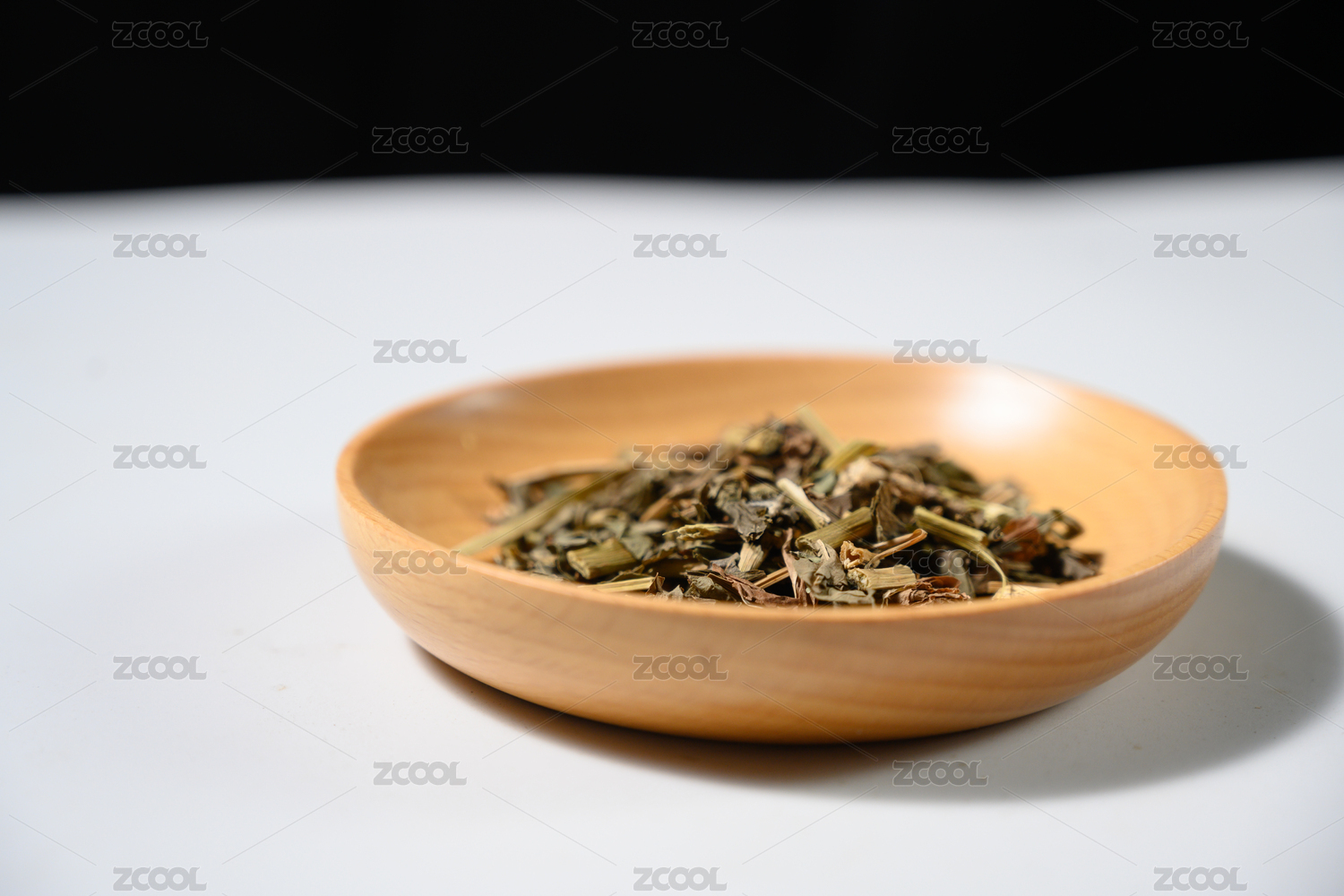 桌面上的盘子里的干爽的青蒿草