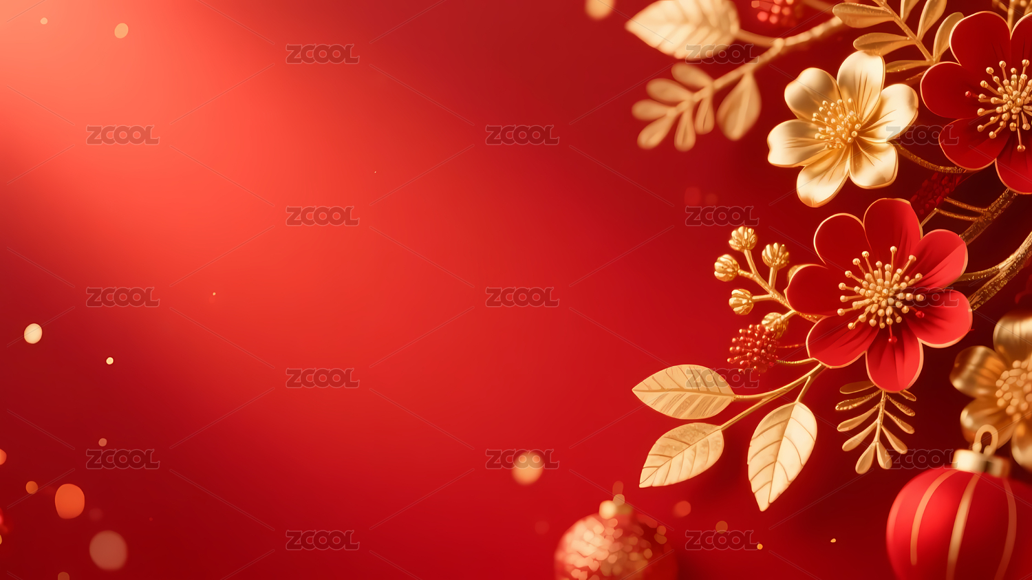 红色渐变金色花卉装饰