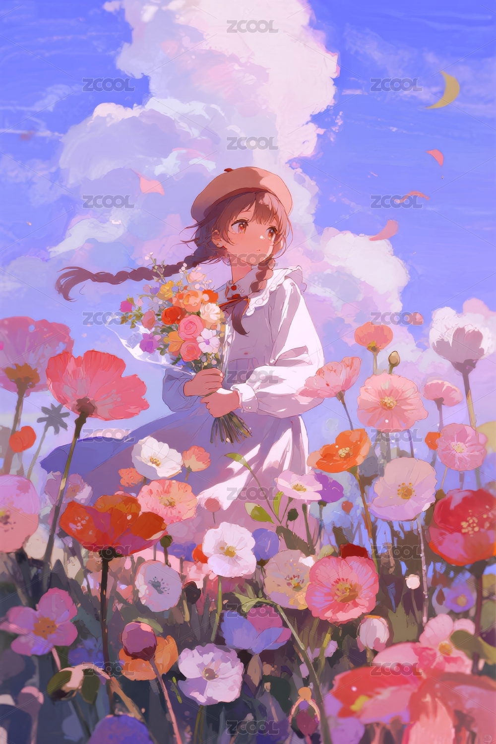 花海中的少女