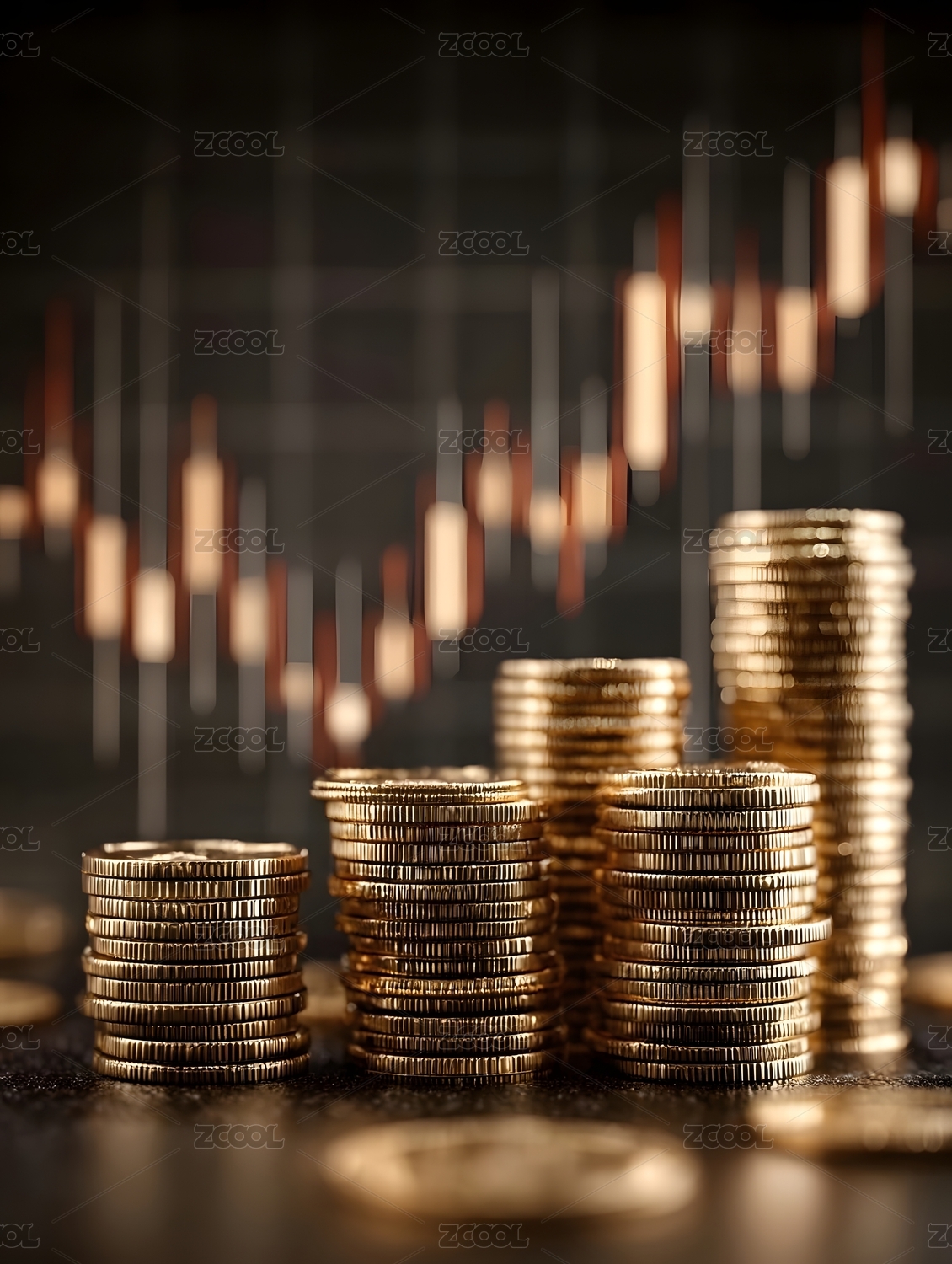 金色硬币堆积图表背景