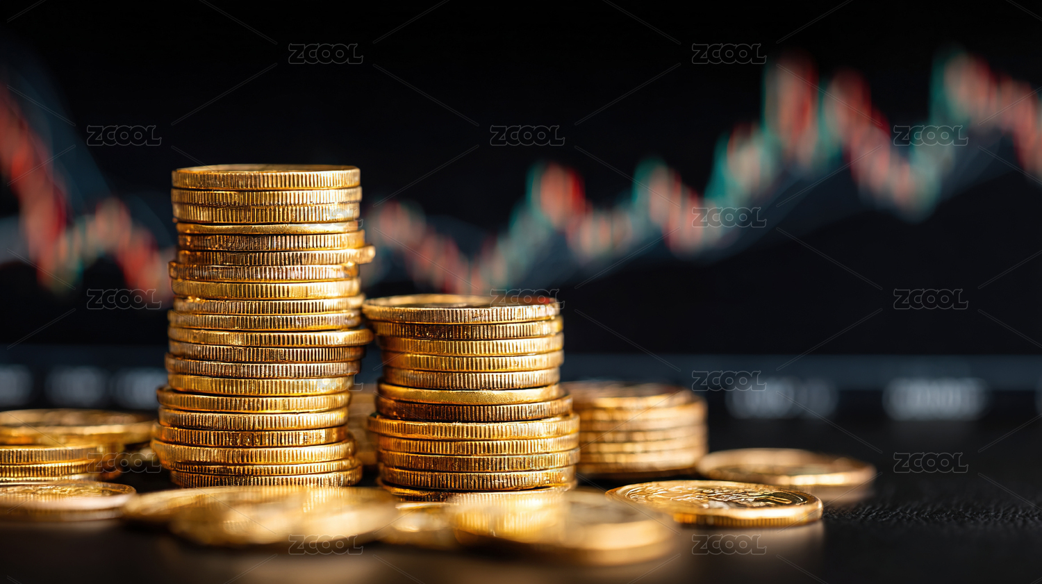 金币堆叠在金融图表前