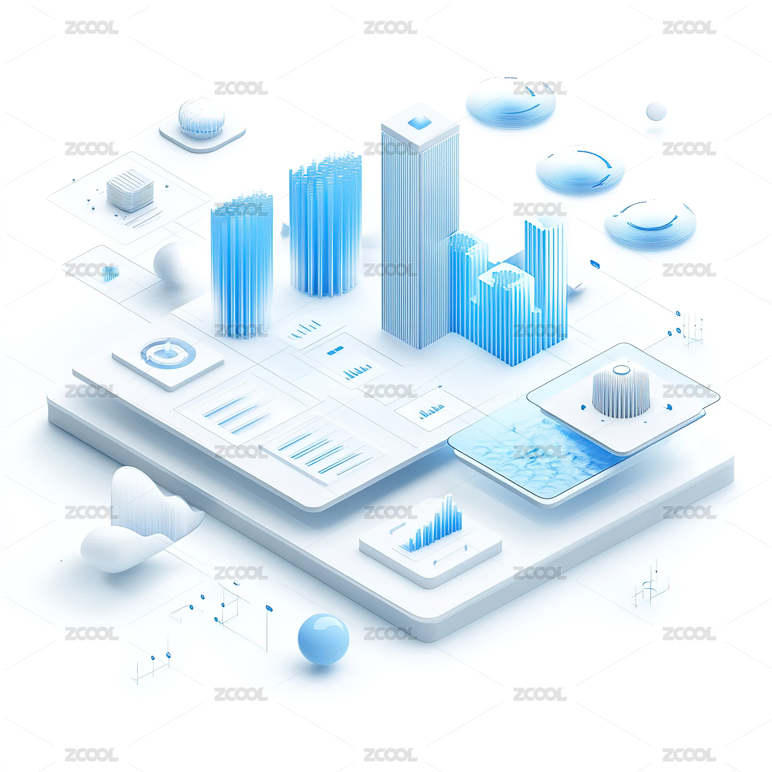 3D科技立体图标互联网金融云计算存储元素